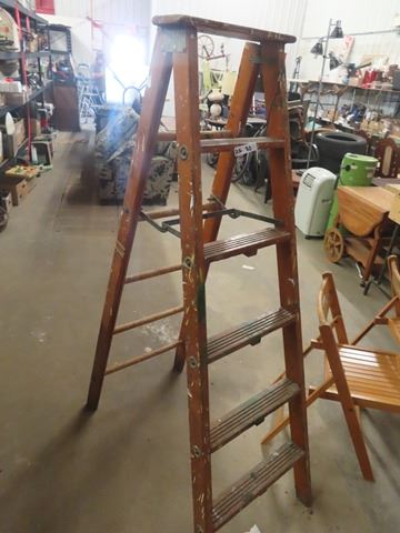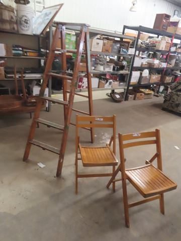 Wooden Step Ladder & 2 Wooden Folding Chairs
