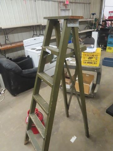 Wooden Step Ladder & Cream Can