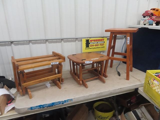 Wooden Stool & 2 Gliding Ottomen - NO Cushions
