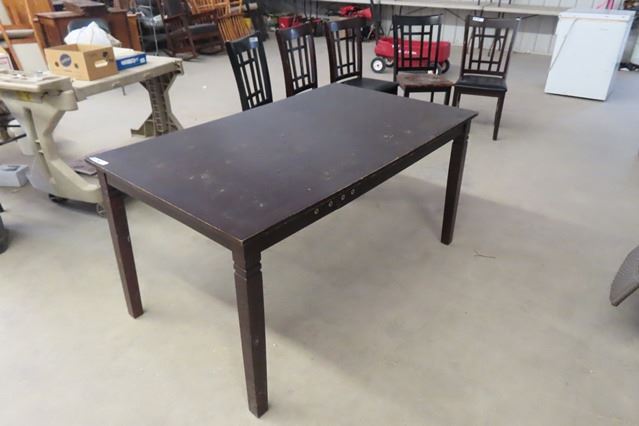 Wooden Table 30" x 33" x 60" & 5 Chairs - Table Top in Rough Condition