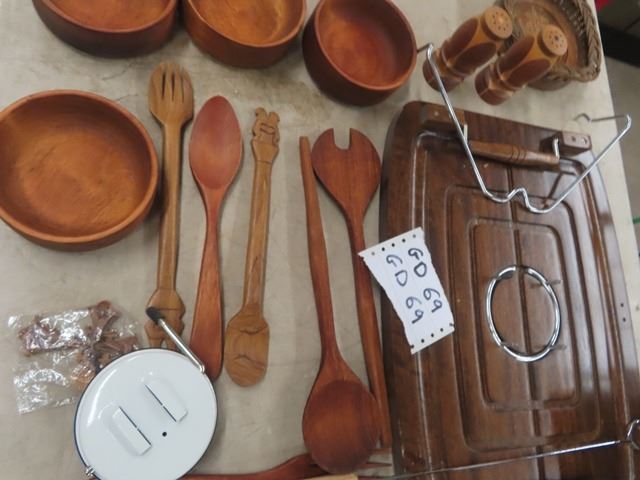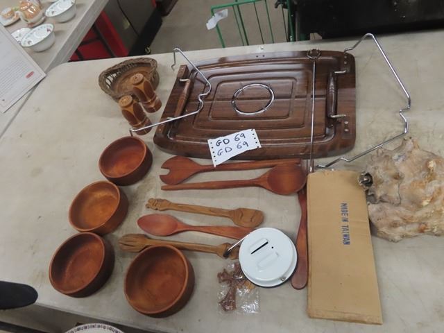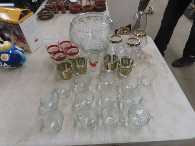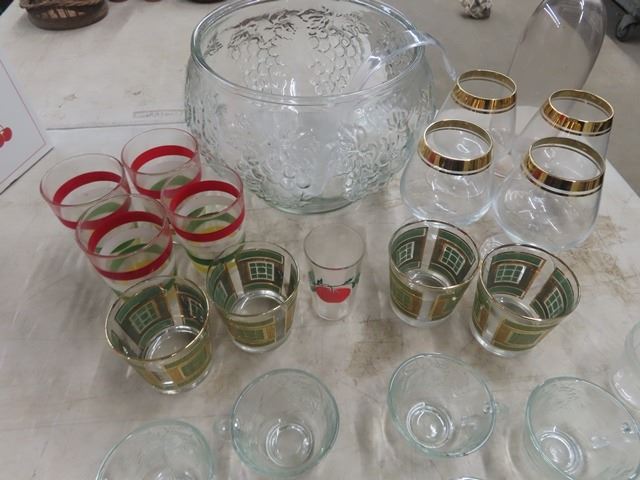 Wooden Tray, Dishes, Punch Set & Glasswares