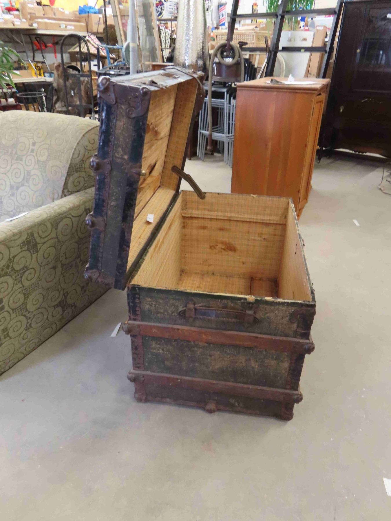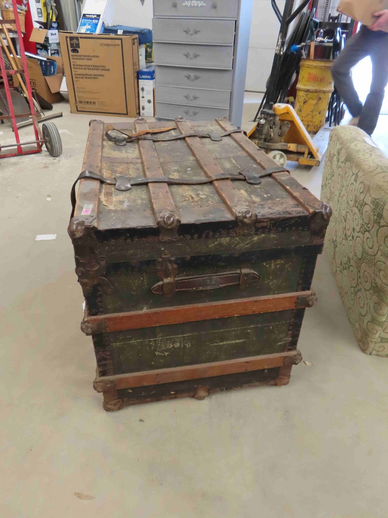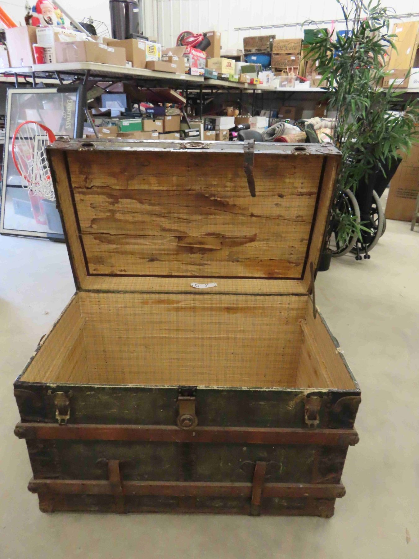 Wooden Trunk with Leather Strapping 22" x 24" x 36"