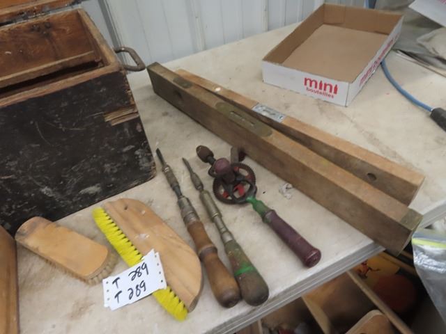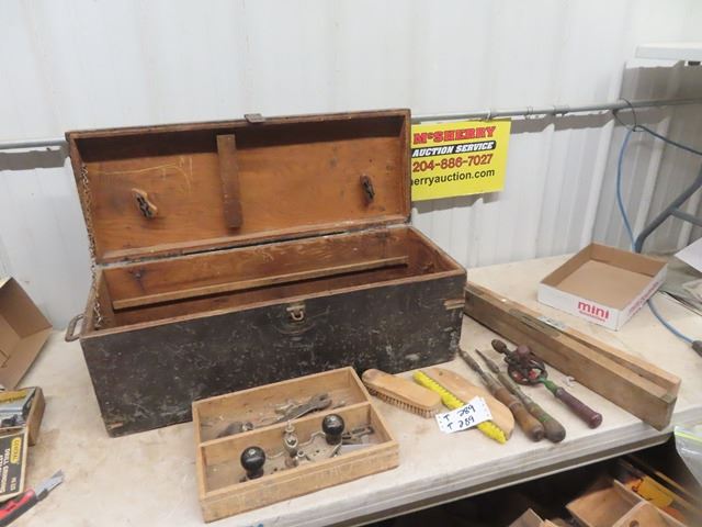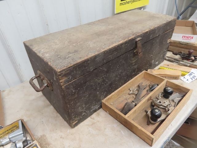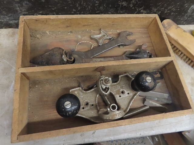 Wooden carpenter Box with someTools ; Planer, Levels, Drills