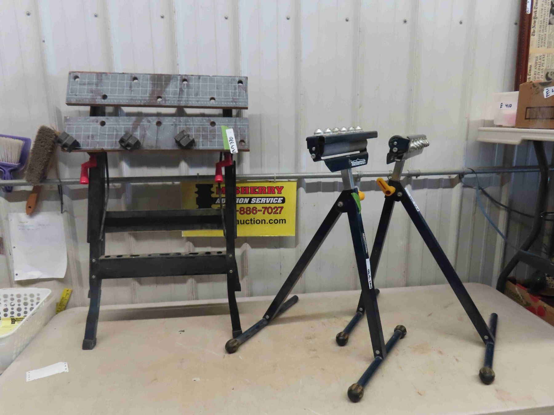 Workmate Table & 2 Mastercraft Adjustable Roller Stands