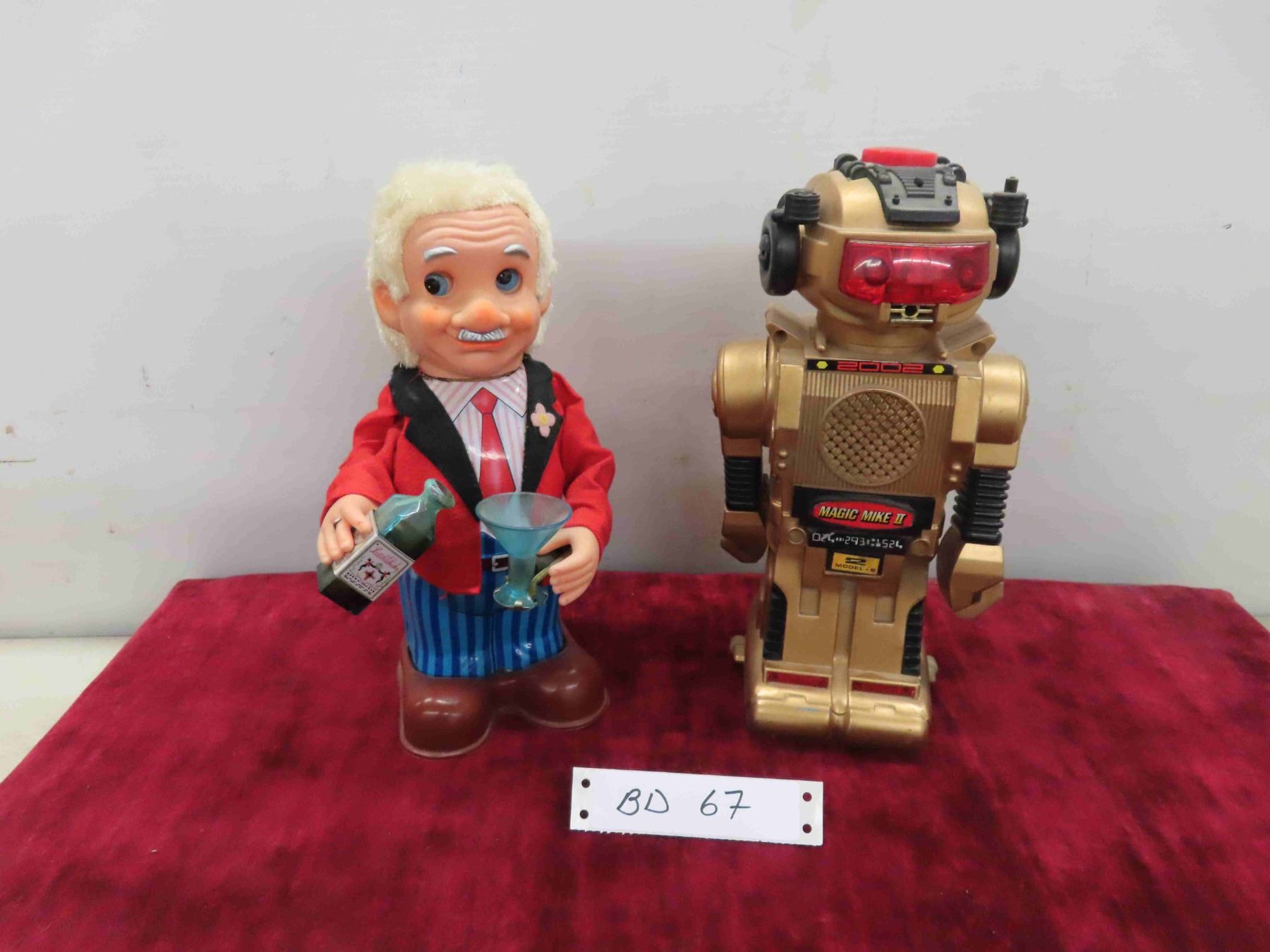 Works! Vintage Battery Operated Mechanical Bartender Japan Tin Toy & (1) 1984 Robot