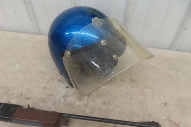 World Famous Sparkly Blue Motorcycle/ Snowmobile Helmet, Crossman Model 73 Pellet Gun