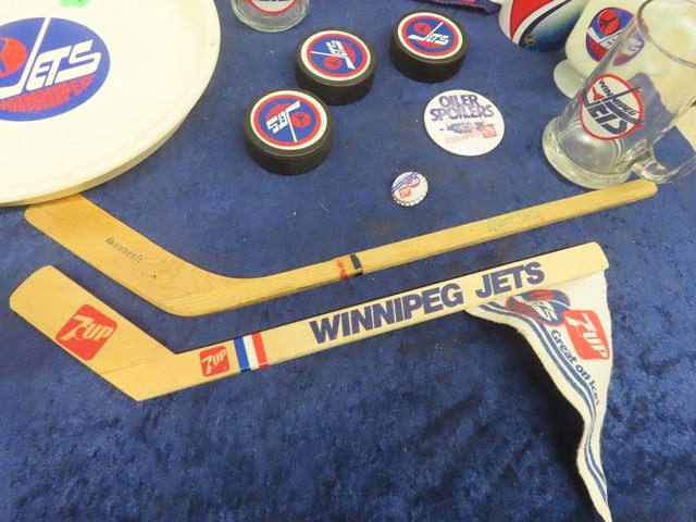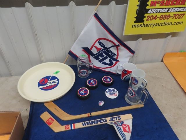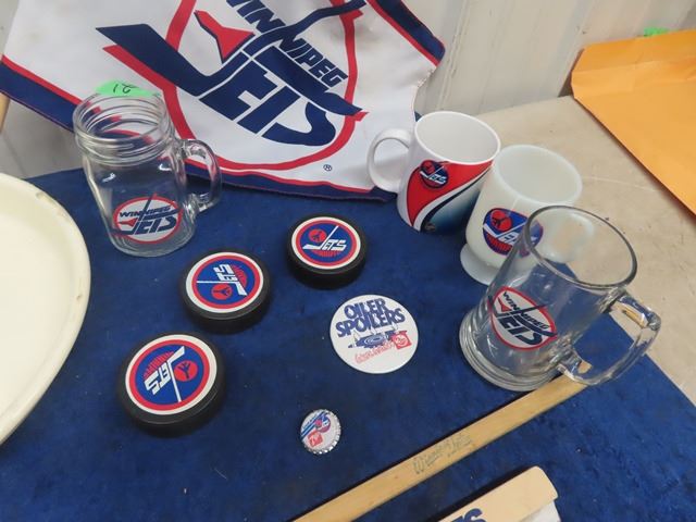 Wpg Jets Lot ; Mugs, Tray, Pucks, Buttons, Flags, Mini Sticks - All Vintage 1.0