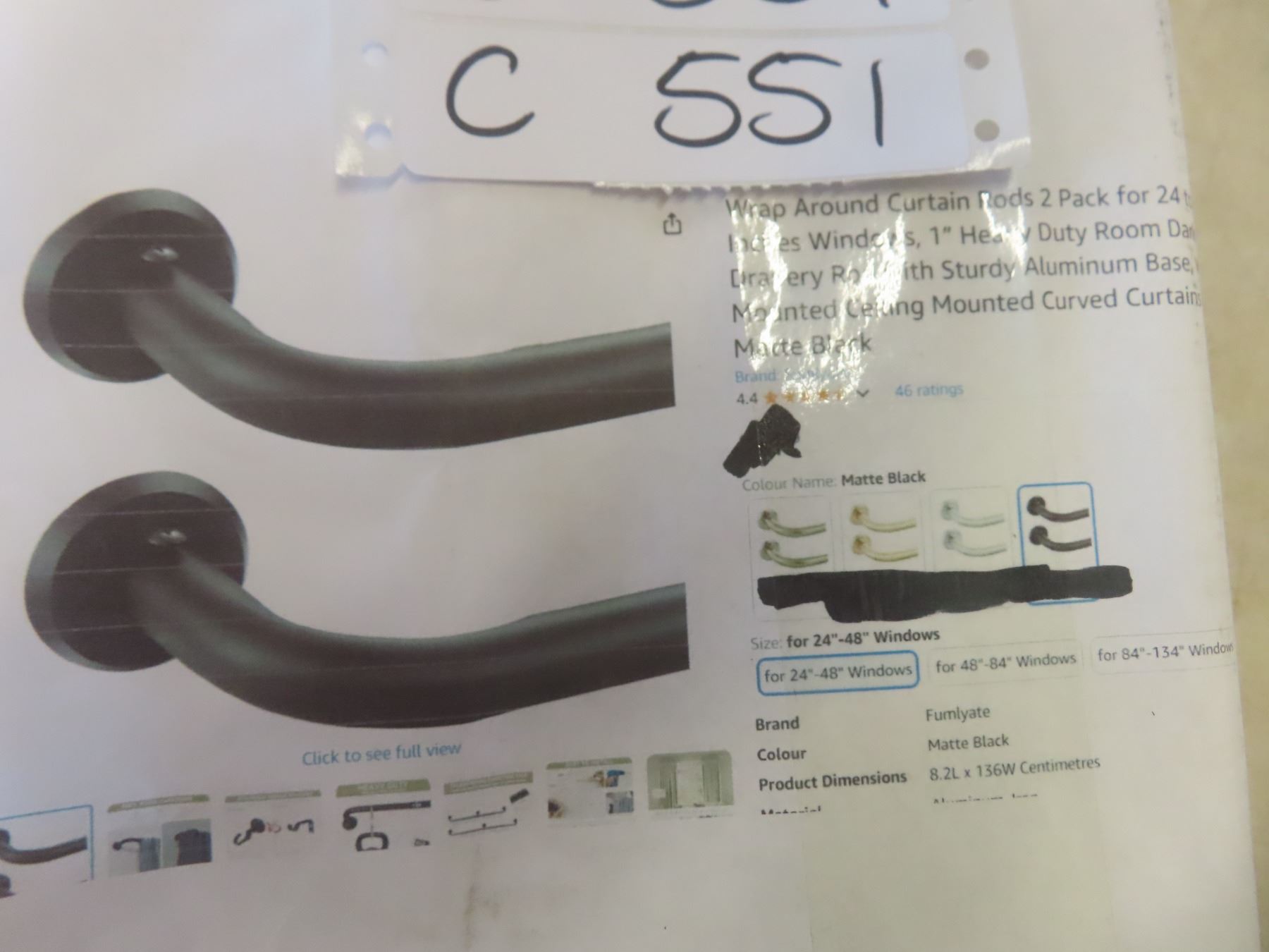 Wrap Around Curtain Rods 2 Pack for 24-48'' windows. 1'' Heavy Duty room darking Drapery. Sturdy Aluminim Base. Black. New or Store Return