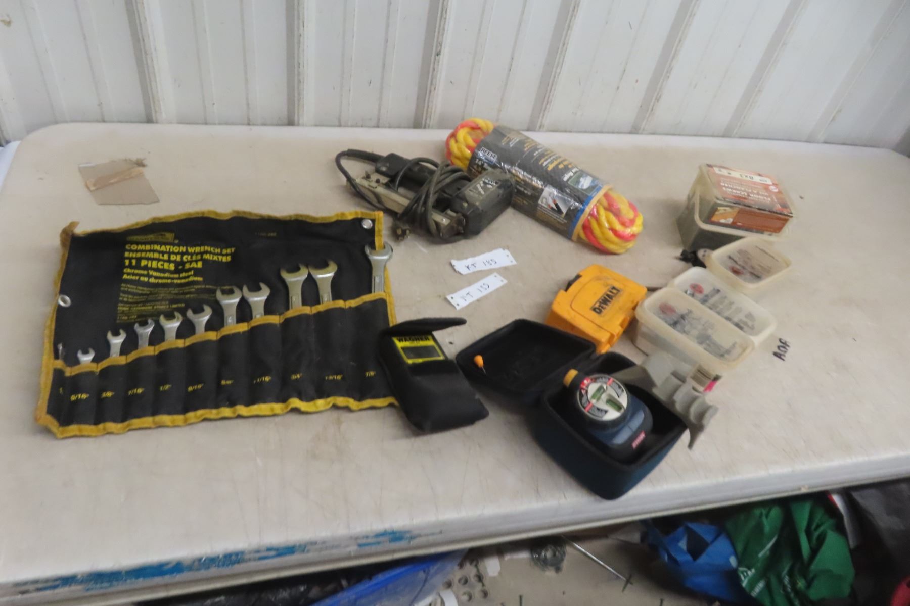 Wrench 7/8 Set, Power Stapler, Torpedo Laser Level, Moisture Meter, and Nailer