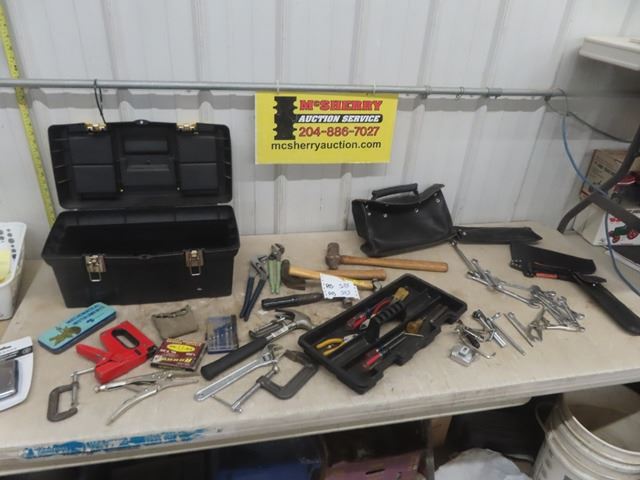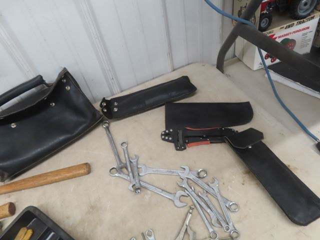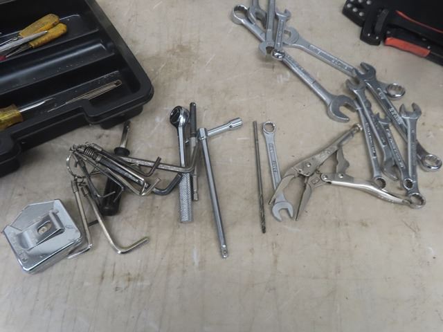 Wrenches, Hammers, Pliers, Clamps, Staples, Vice Grip, Screwdrivers, plus others Odds n Ends of Tools, Tool Box + Leather Tool Holder