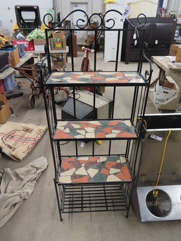 Wrought Iron Ceramic Folding What Not Shelf 60" X 22.5" x 12"