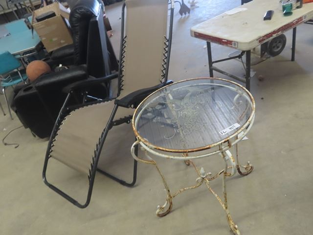 Wrought Iron & Glass Patio Stand 27" Tall 22" Wide & Gravity Lounge Folding Chair