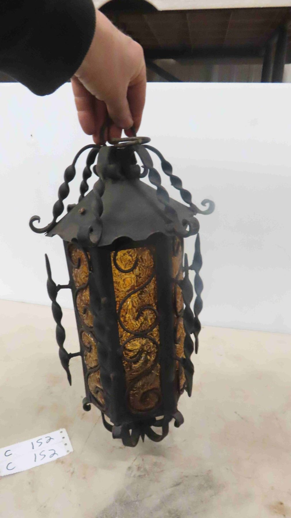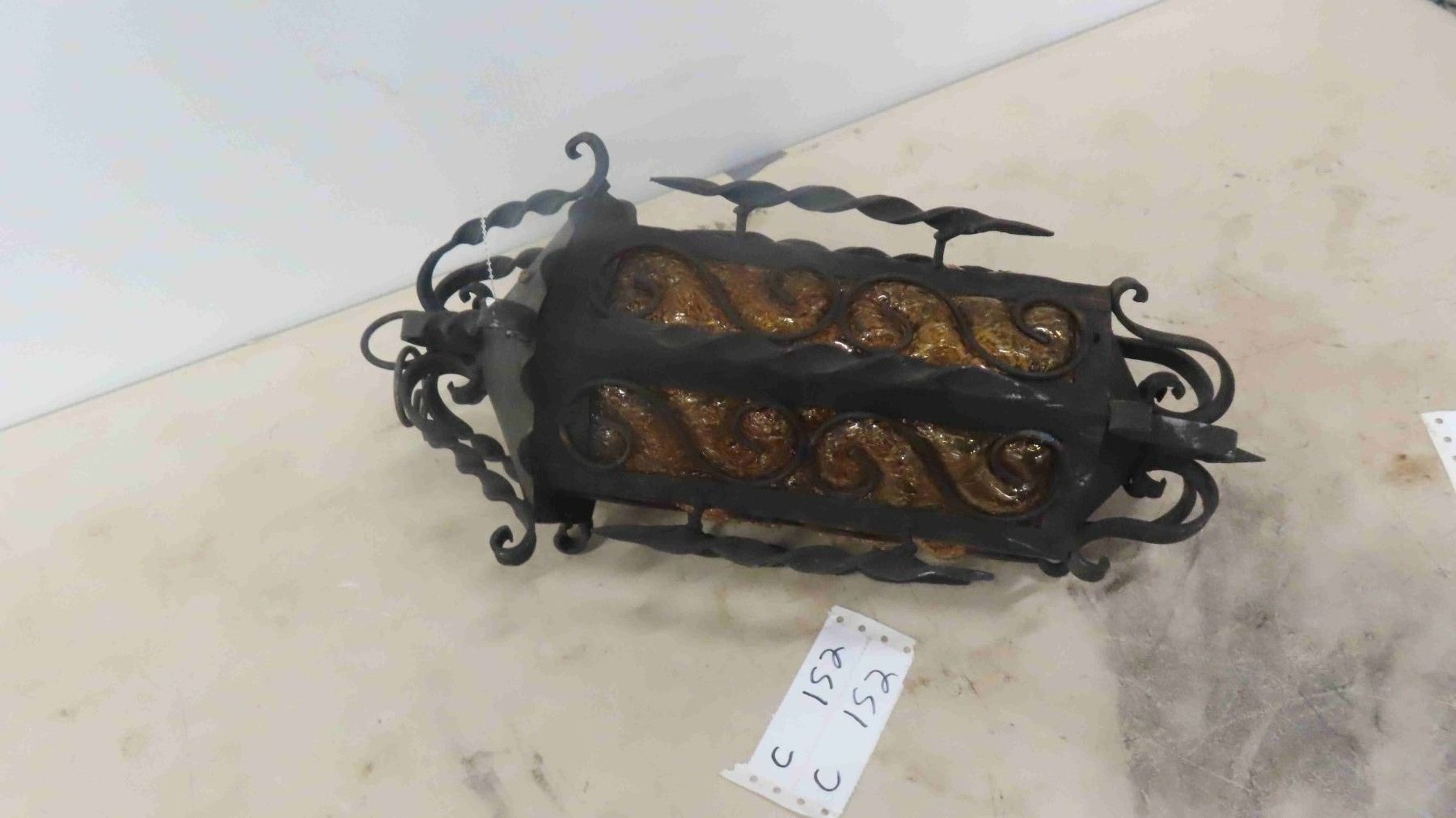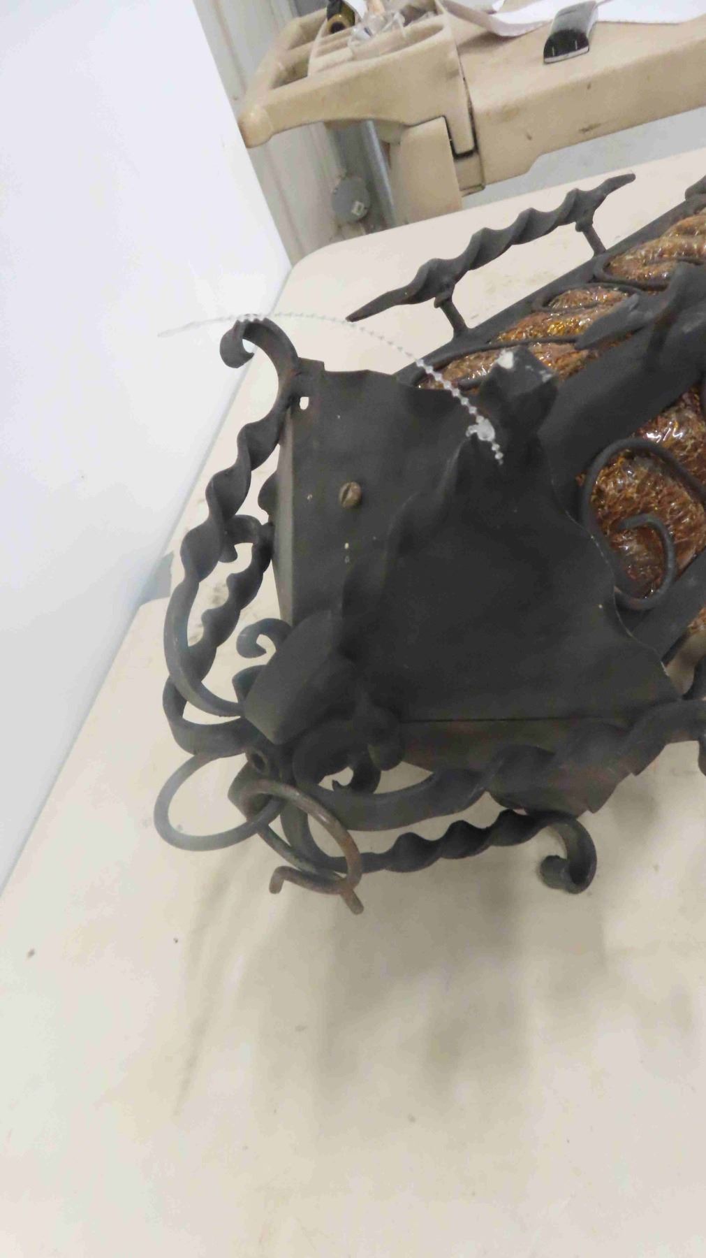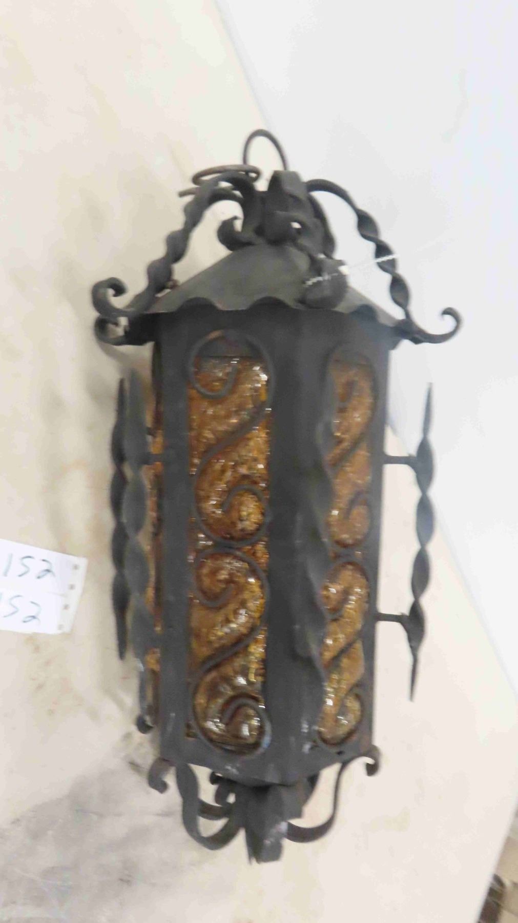 Wrought Iron Hanging Lamp 18" Long 8" Diameter