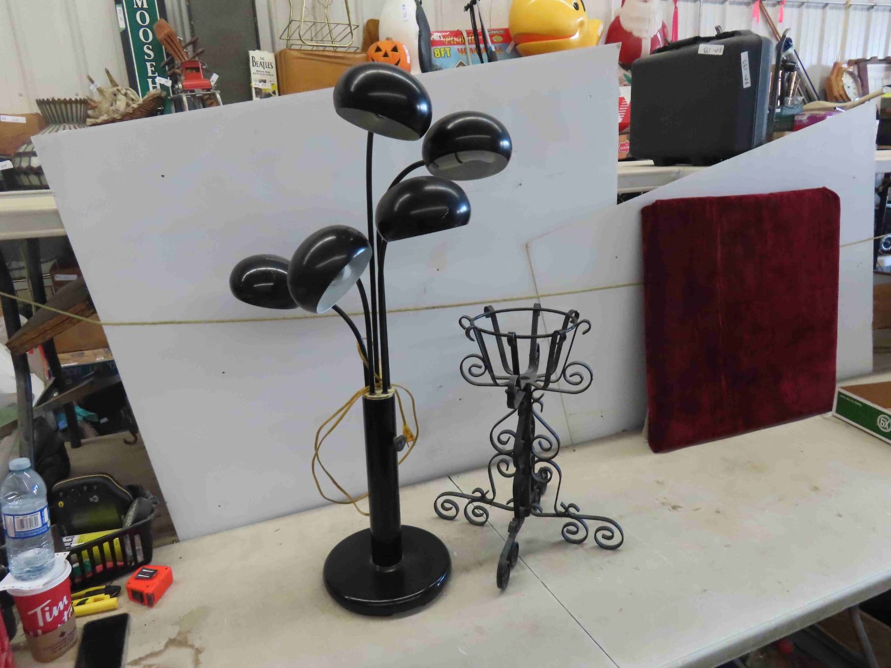 Wrought Iron Plant Stand 19'' Tall , Spider Style Table Lamp 36'' Tall