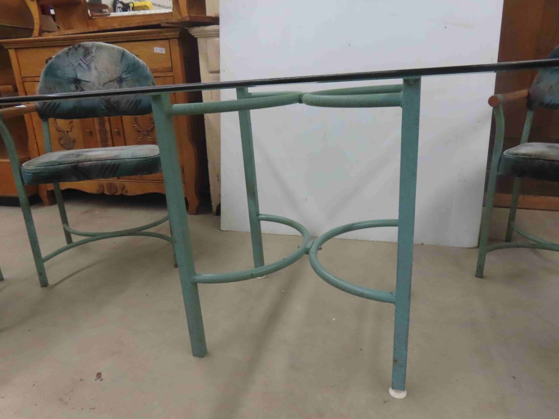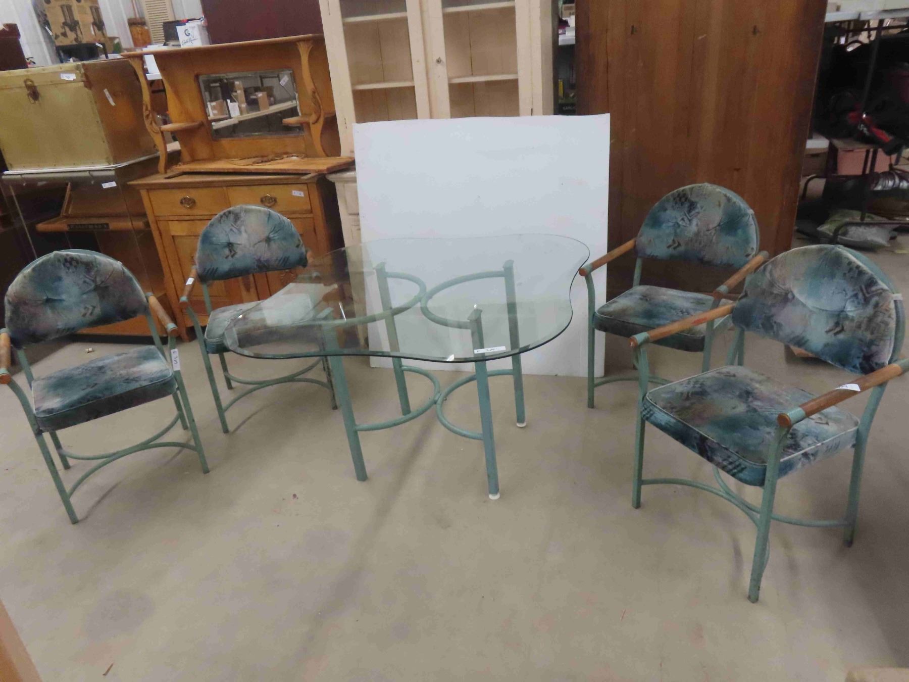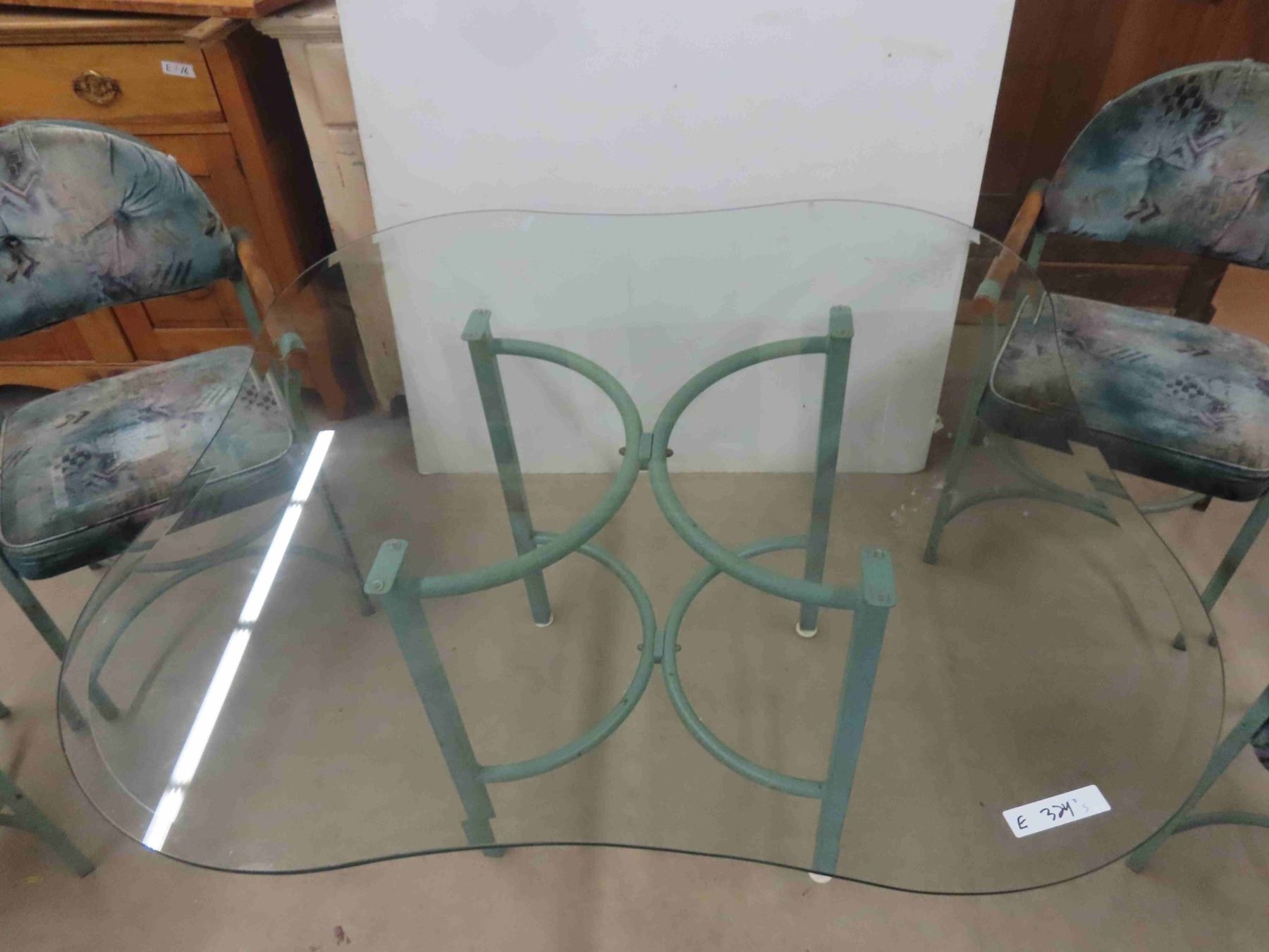 Wrought Iron and Glass Table 29 1/2'' x 47'' x 47'' with 4 Chairs