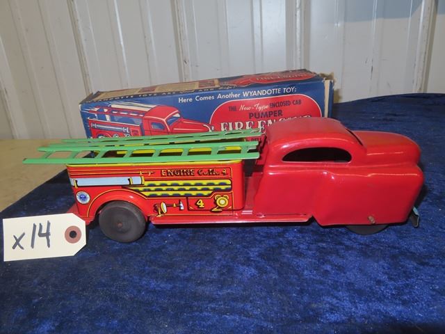 Wyandotte Pressed Metal Pumper Fire Engine Truck w/ Box 12" L x 3.5" H x 3.25" W