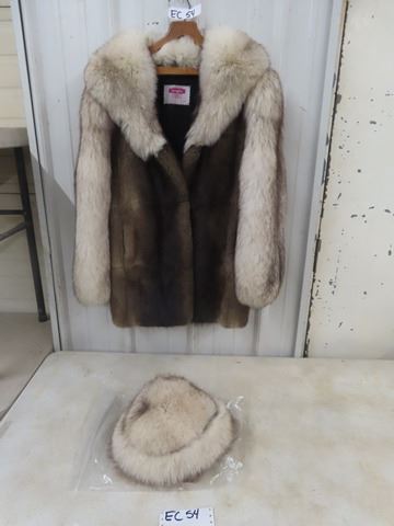 Yaegers Muskrat Fur Coat & Hat Size Small/Med