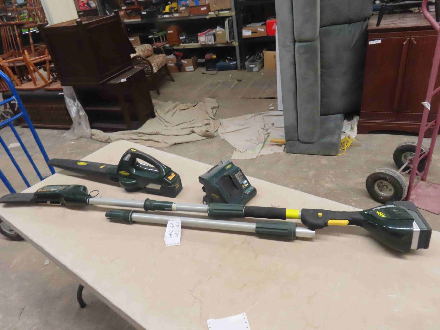 Yardworks 20 Volt Pole Chain Saw , Yard Blower , 2 Batteries & Charger