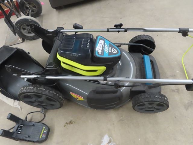 Yardworks 48V Push Lawn Mower with Charger & Bagger