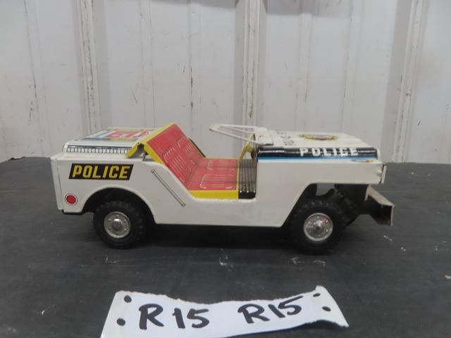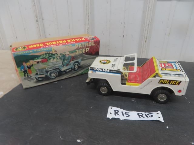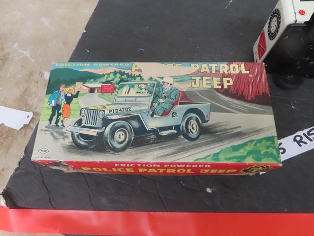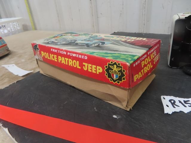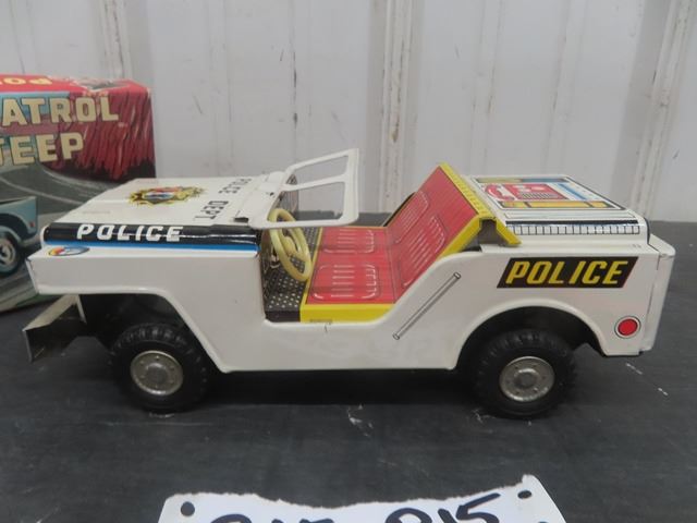 Yone Made in Japan Tin Friction Police Patrol Jeep with Box 3" x 4" x 9"