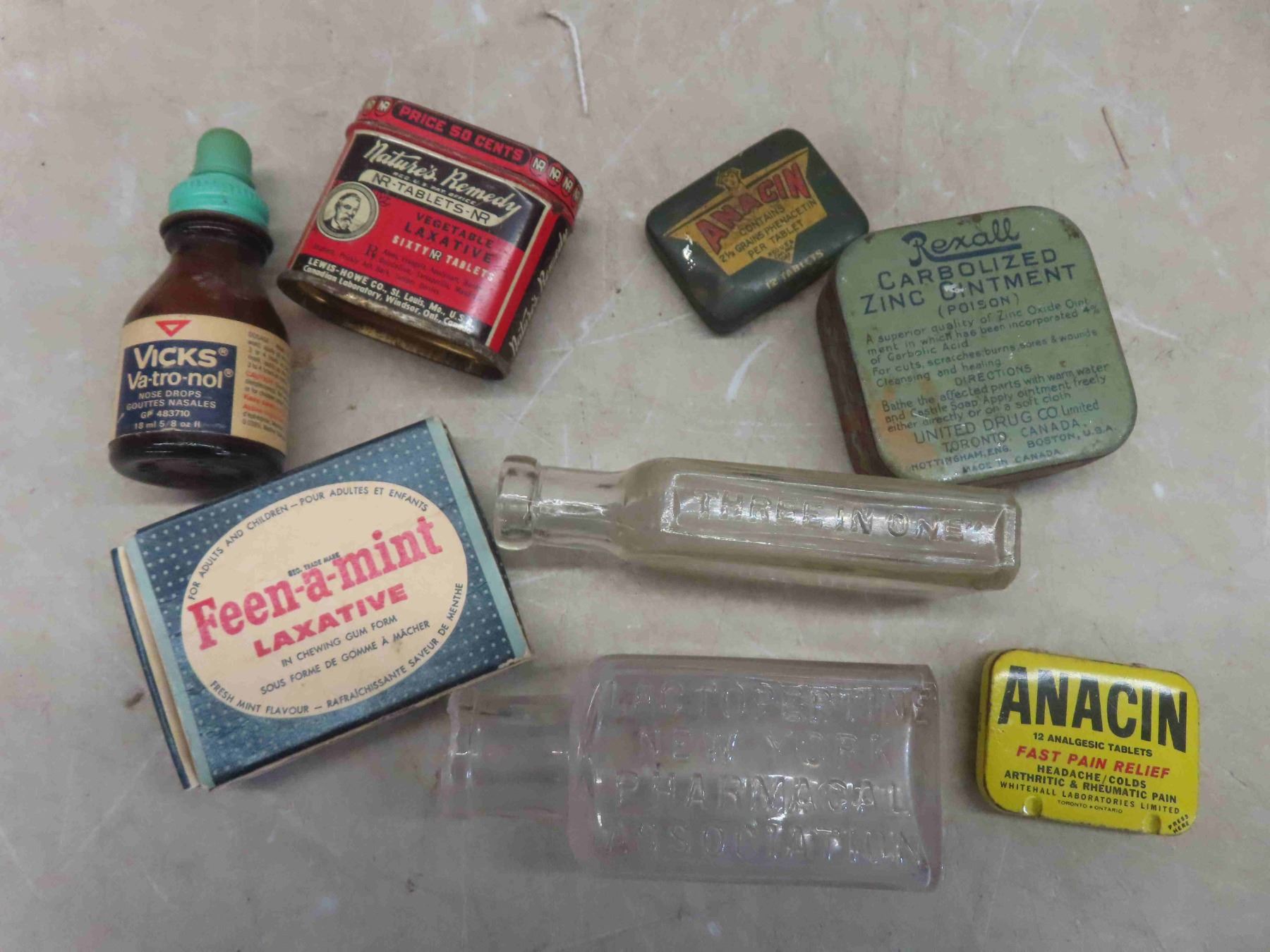 apothacary suupplies, vaseline hair tonic, vicks alka seltzer and more