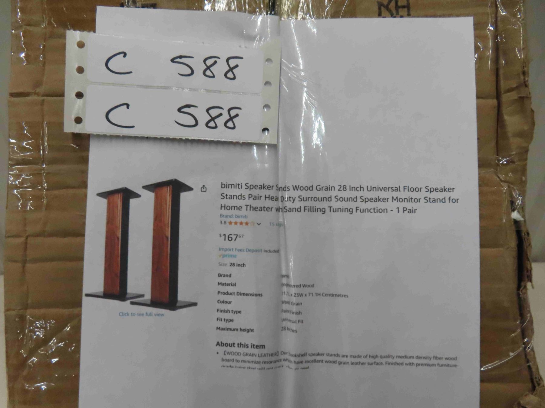 bimiti Speaker Stands Wood Grain 28 Inch Universal Floor Speaker Stands Pair Heavy Duty Surround Sound Speaker Monitor Stand for Home Theater with Sand Filling Tuning Function - 1 Pair - New or Store Return