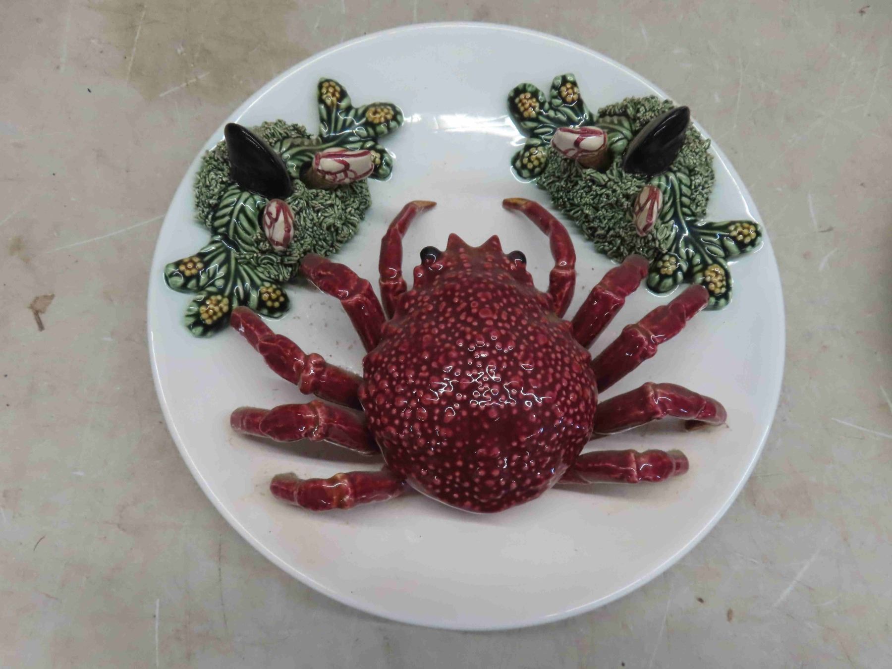 blue mountian style dog 14"H, horse book ends, 2 seafood plates and more