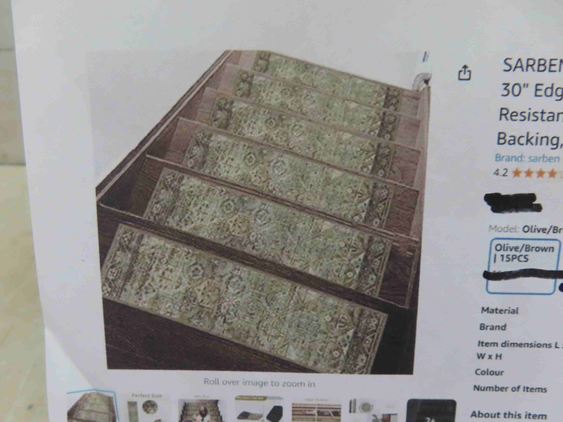 carpet stair trreads nonslip 15 PCS. 8" x 30"edging stair runner for wooden steps indoor, resistant stair rugs with reusable TPE adhesive backing, residue free mat for pets New or Store Return