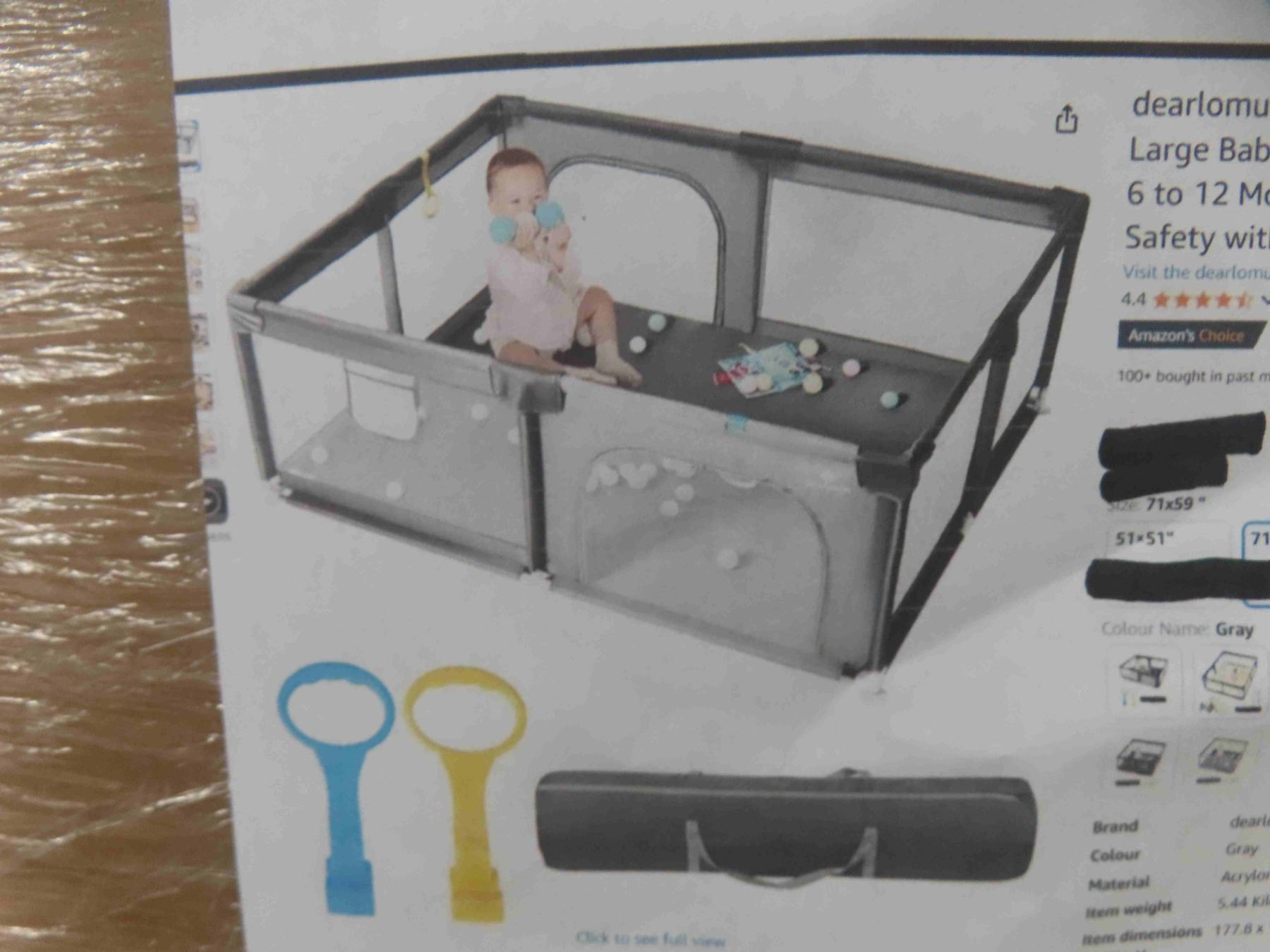 dearlomum Baby Playpen,71"x59" Extra Large Baby Playard, Babies with Gate, 0-6 to 12 Months Activity Center, Sturdy Safety with Soft Mesh(Gray) - New or Store Return