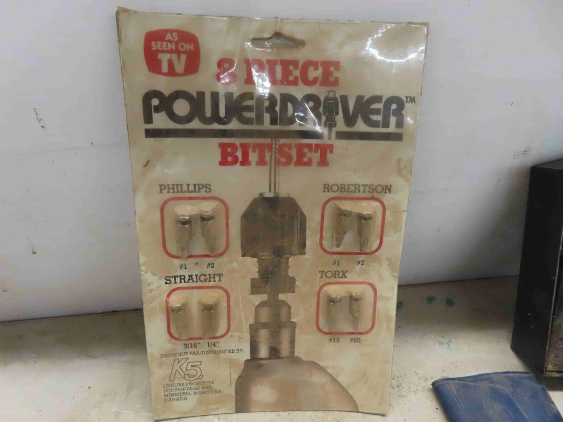 drill bit, new 8 pc power driver set, drum sander kit and more