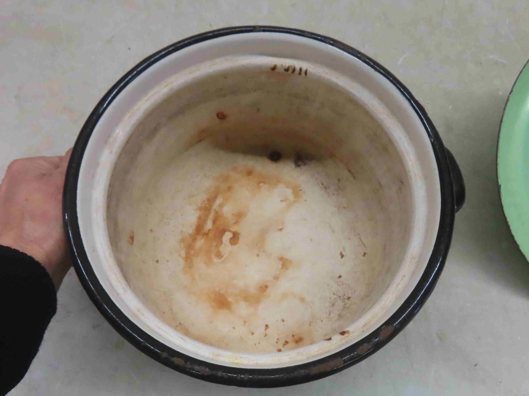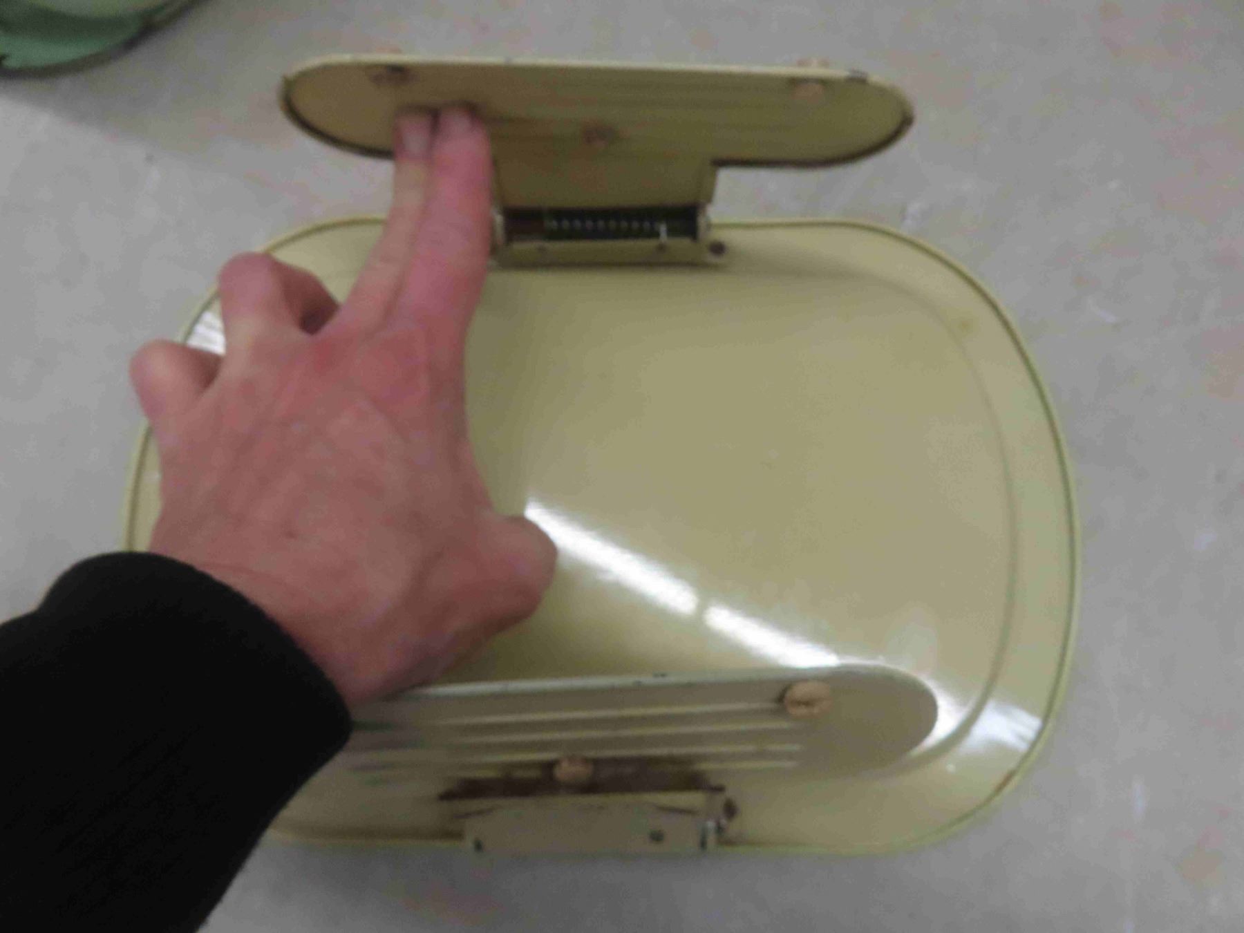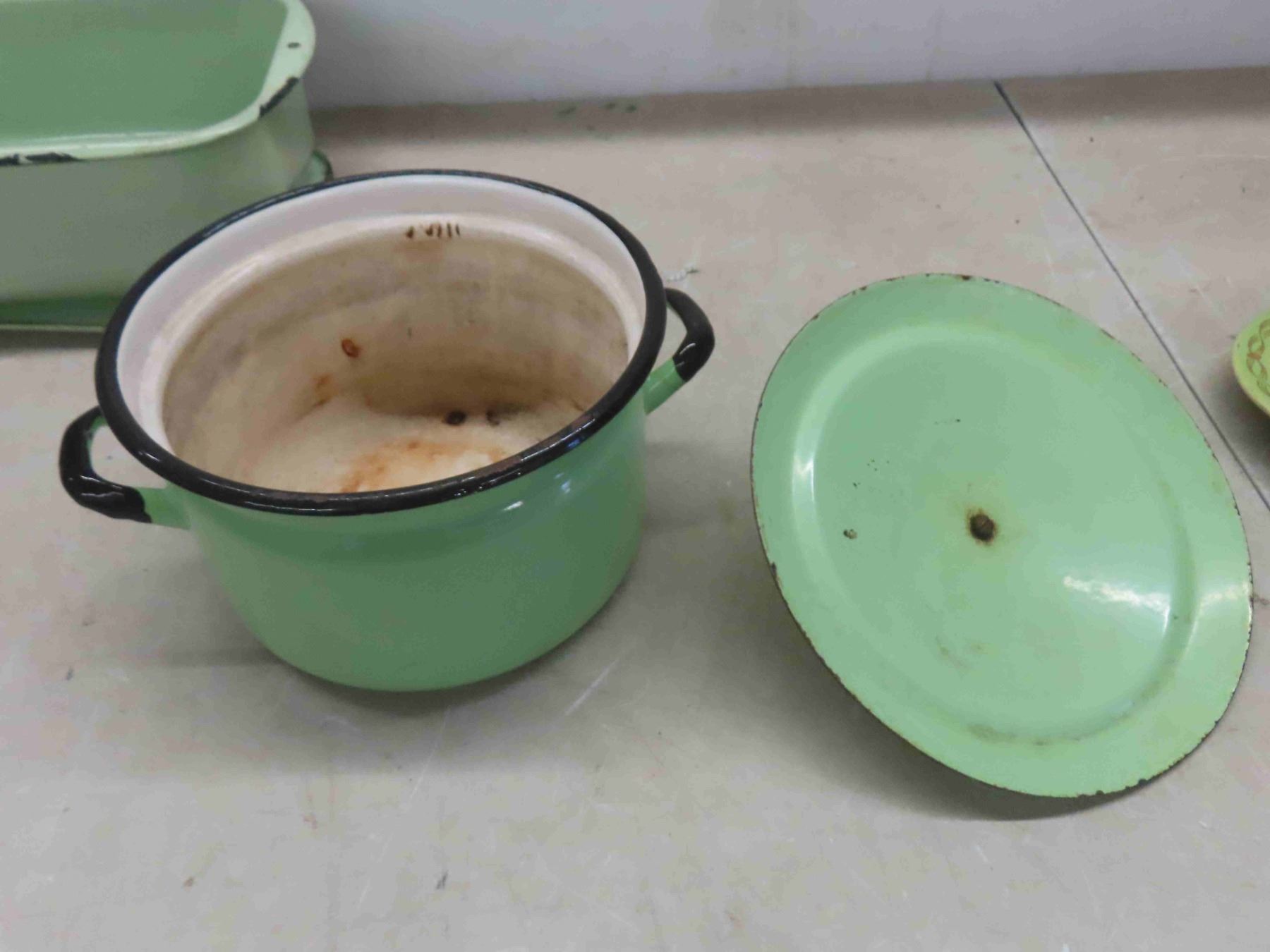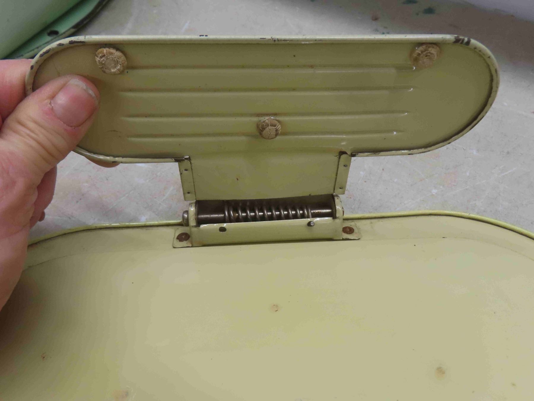 enamelware: refridgerator container with lid, arm rest tv trays with spring action hold