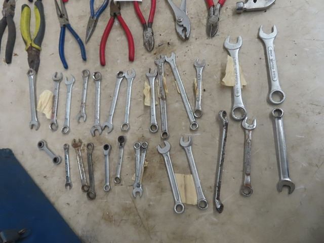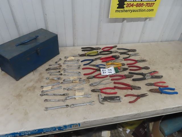 (ev) 50 items 26 Pliers, Cutters, Snips & 25 Wrenches ( smaller sizes) & Metal Tool Box
