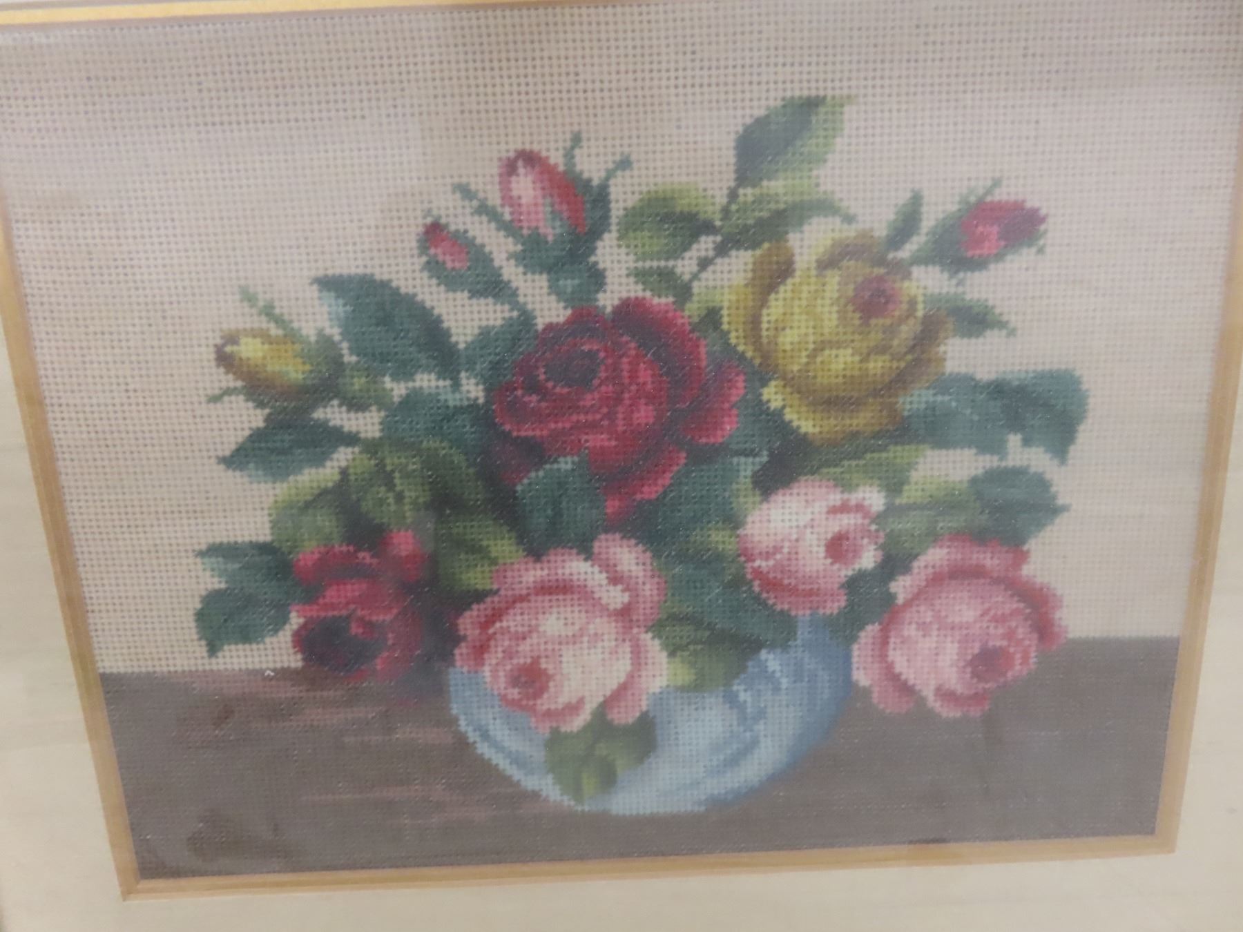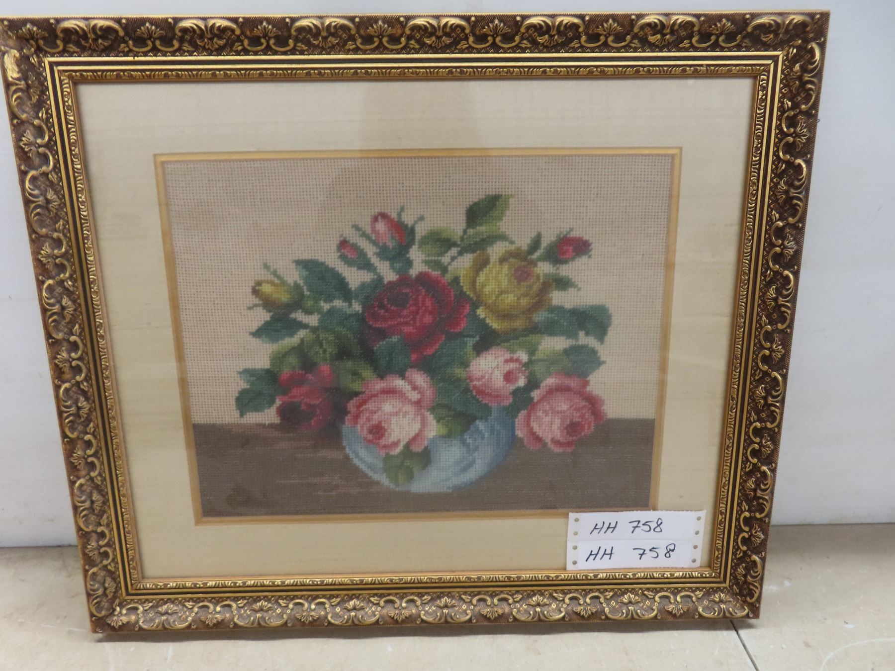 fancy framed needle point picture 20x17