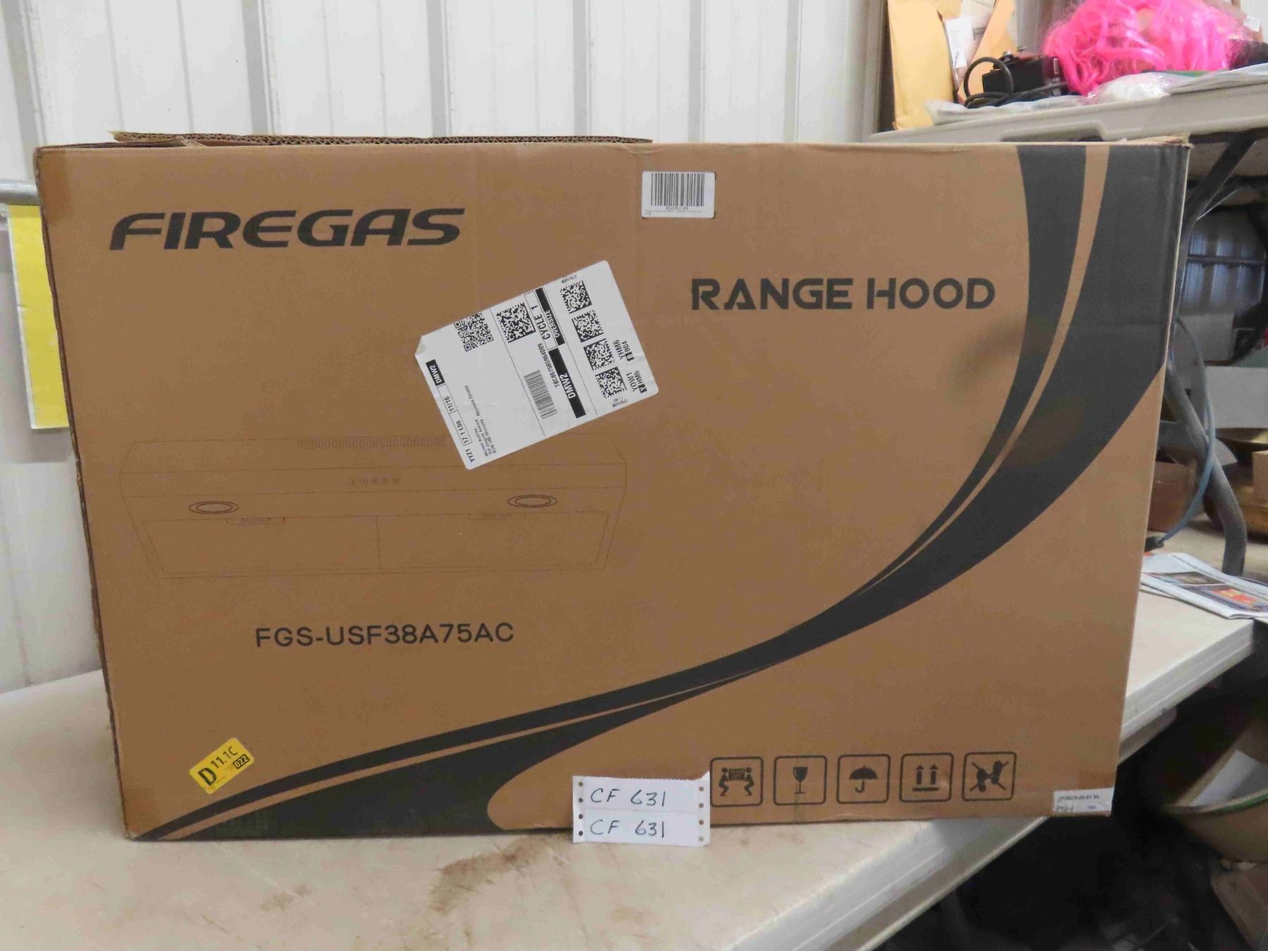 firegas range hood, brush stainless finish, new or store return