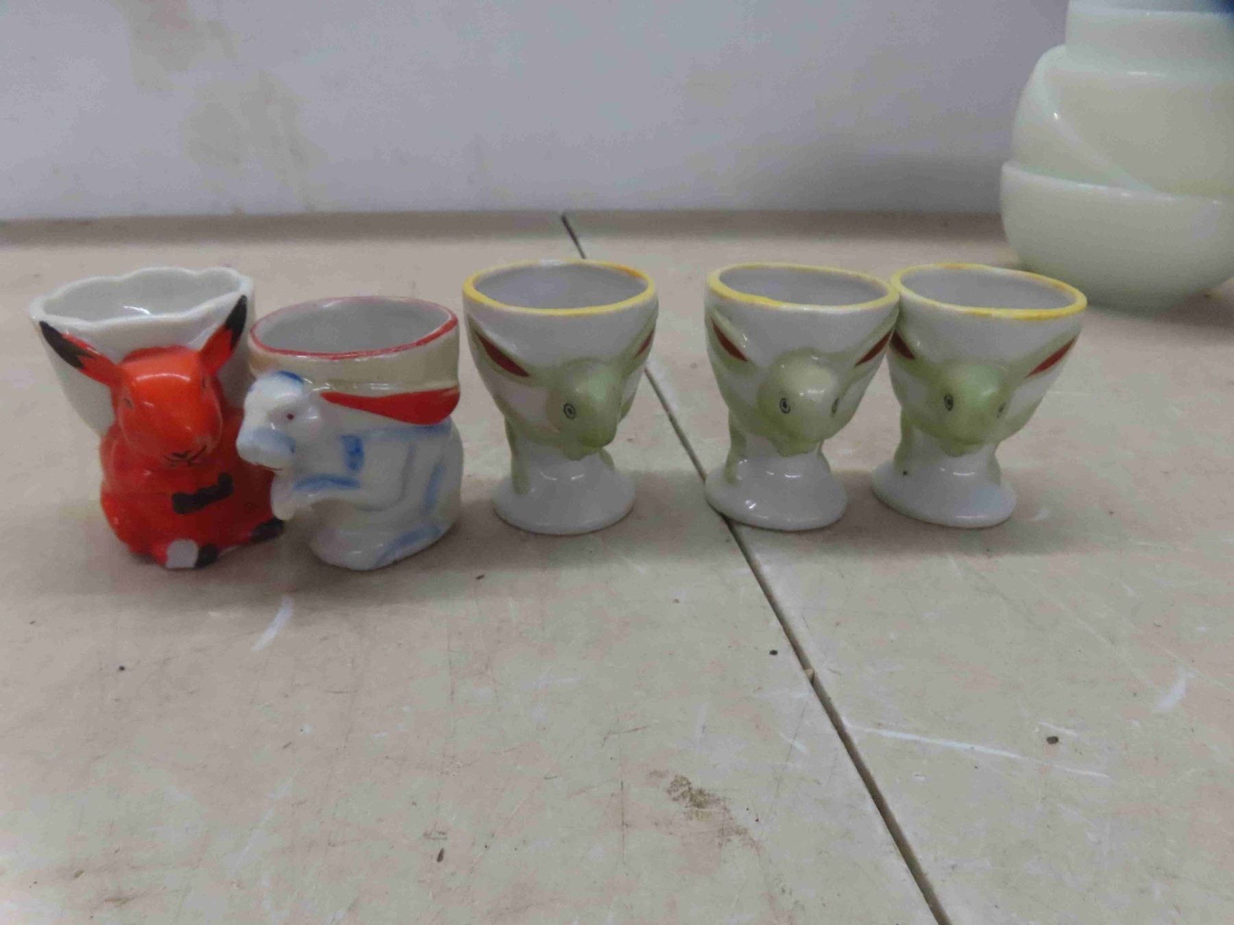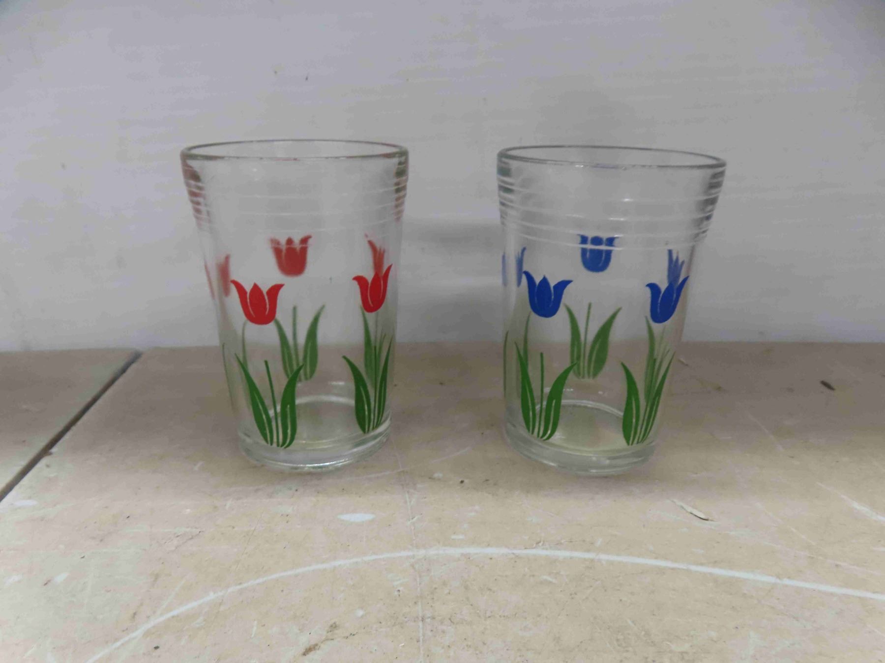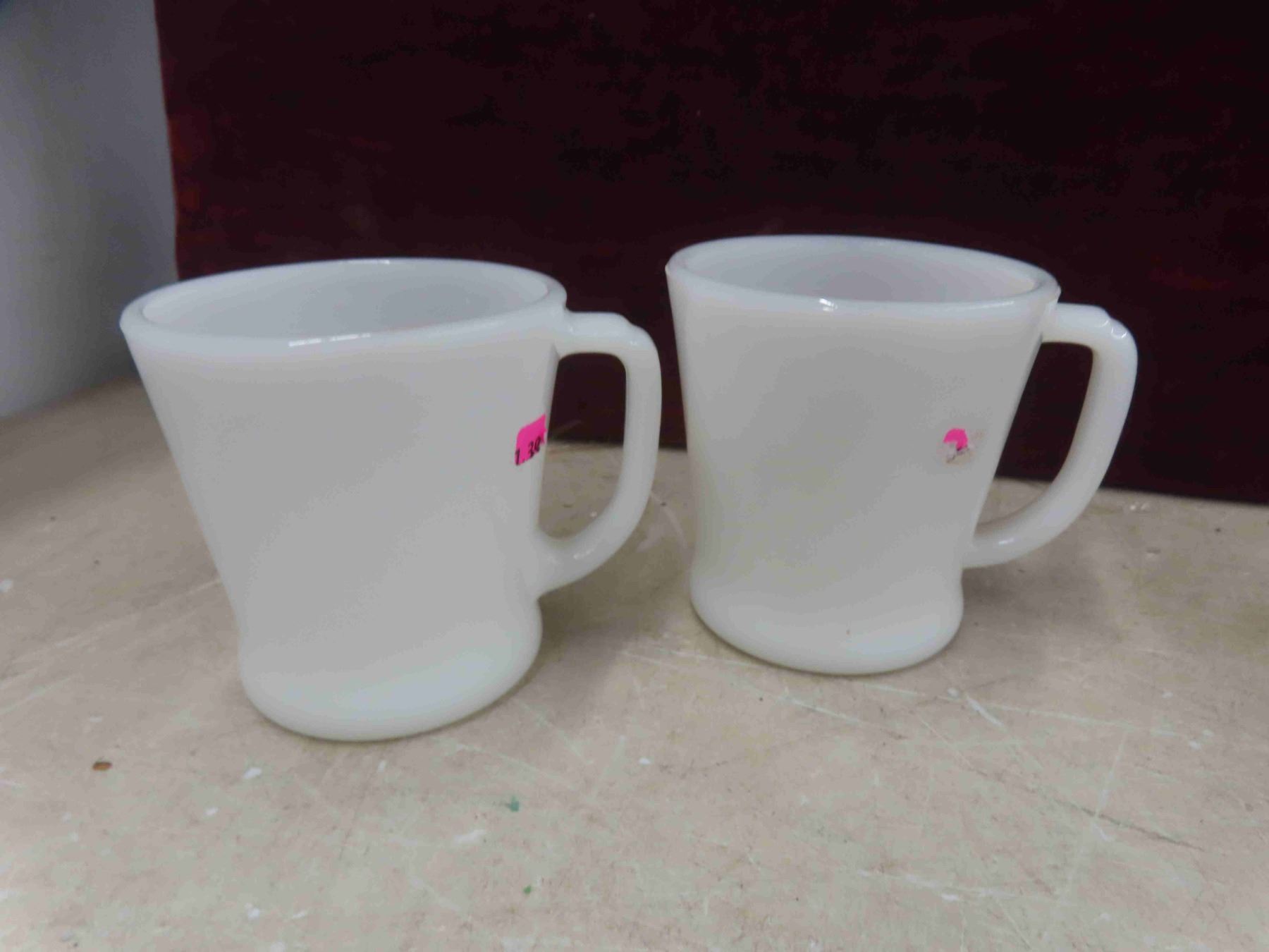 fireking cofee mugs (2), 4 oven proof bowls, egg cups and 2 jjuice glasses