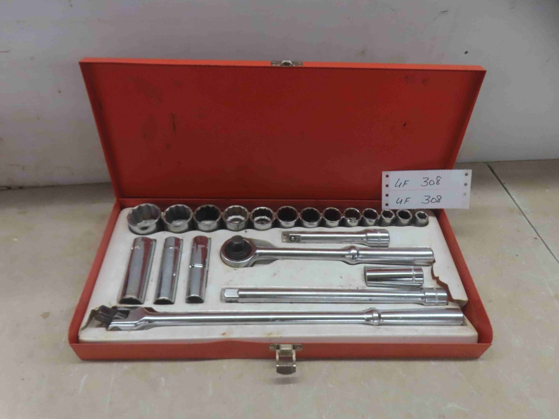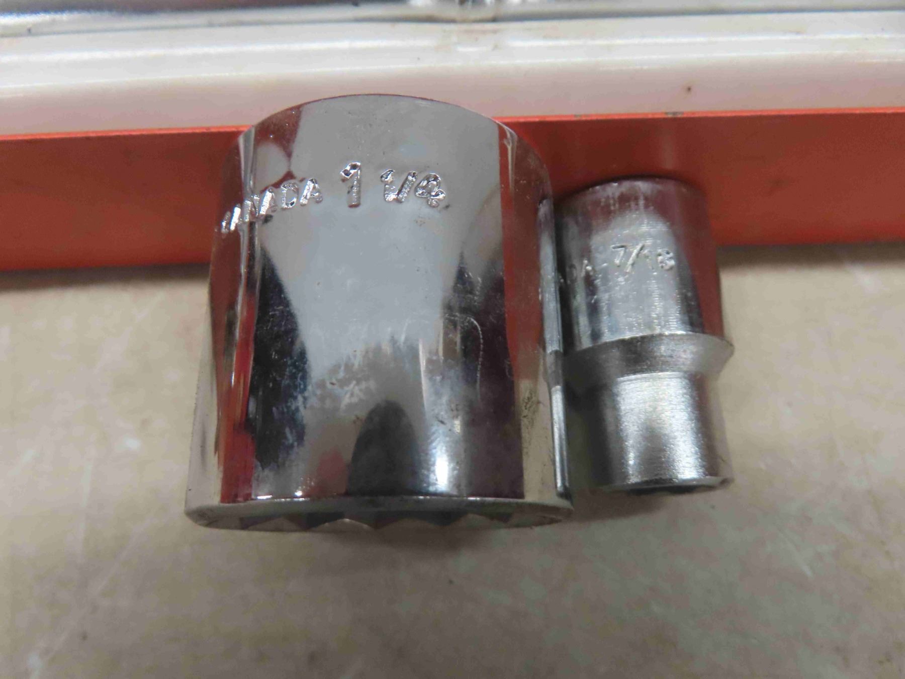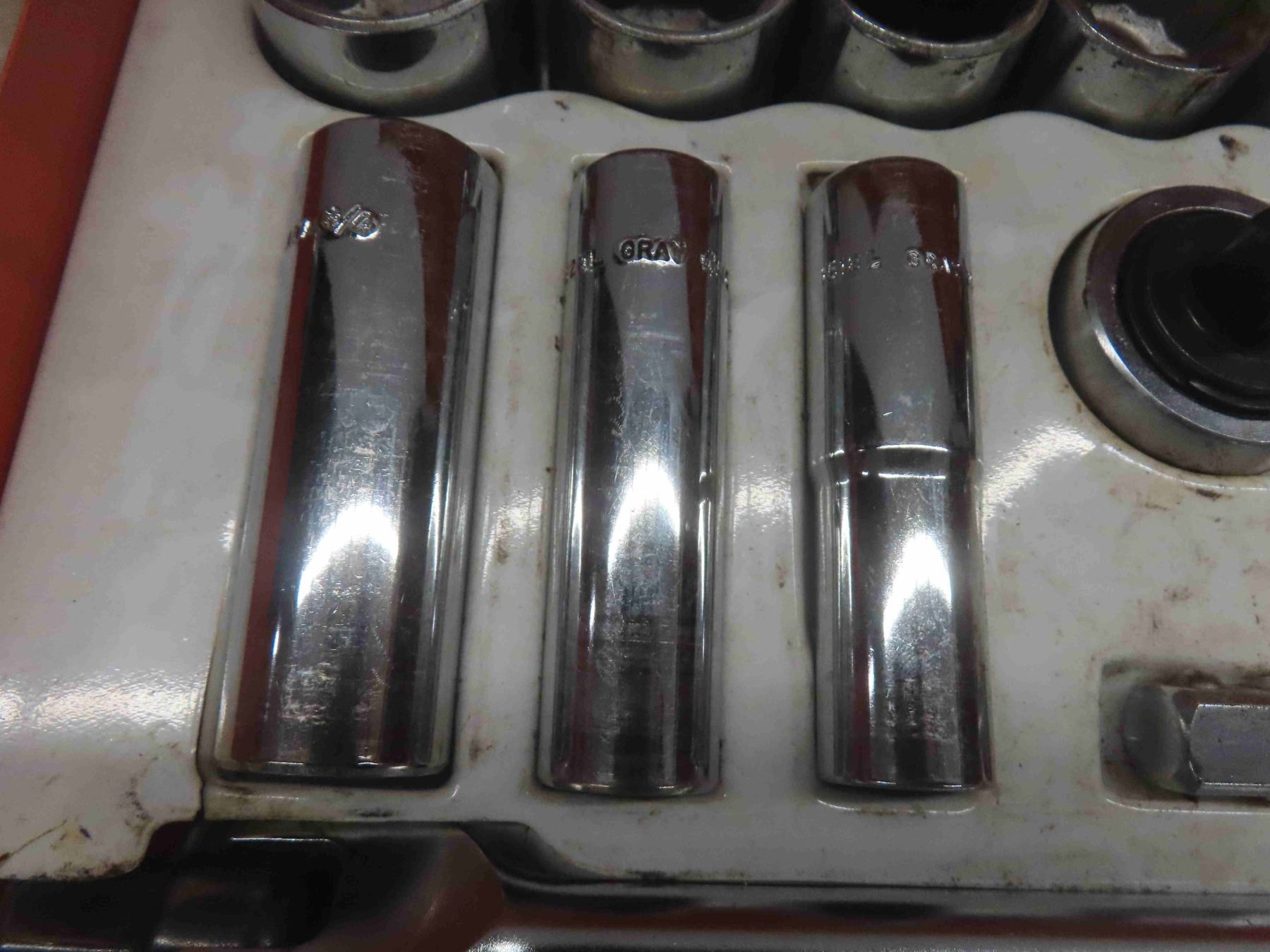 gray 1/2" drive socket set, ratchet, extensions, sockets 7/16-1 1/14