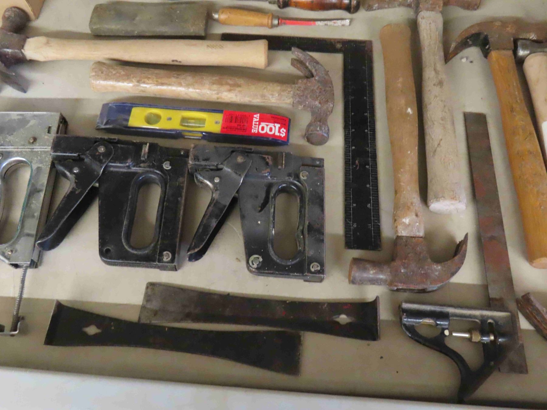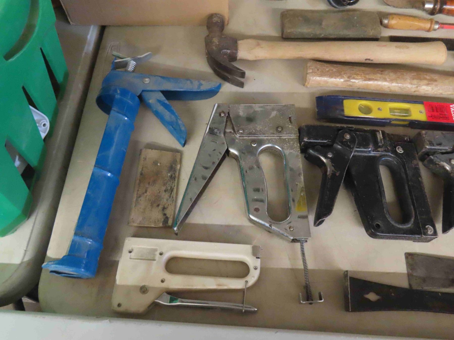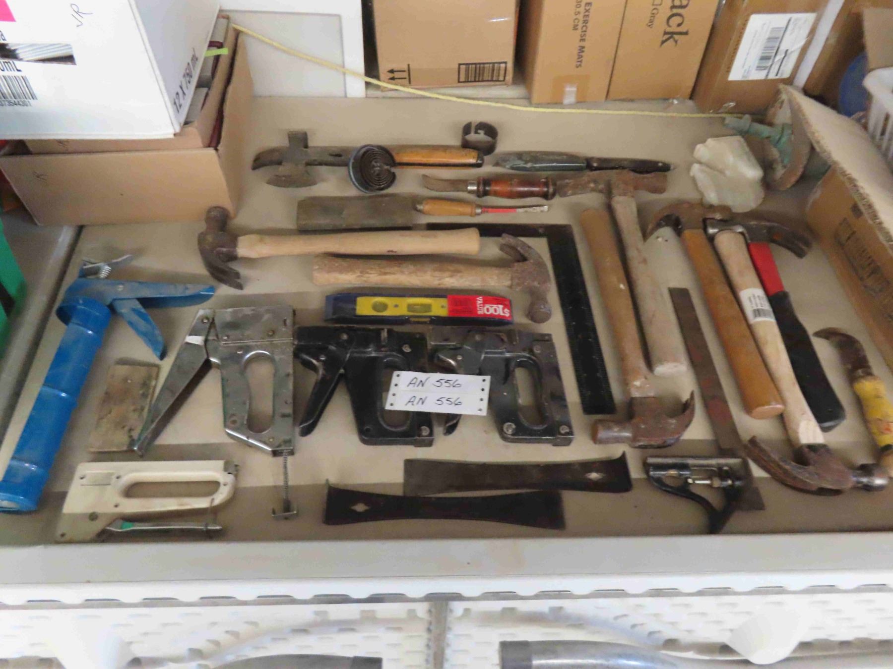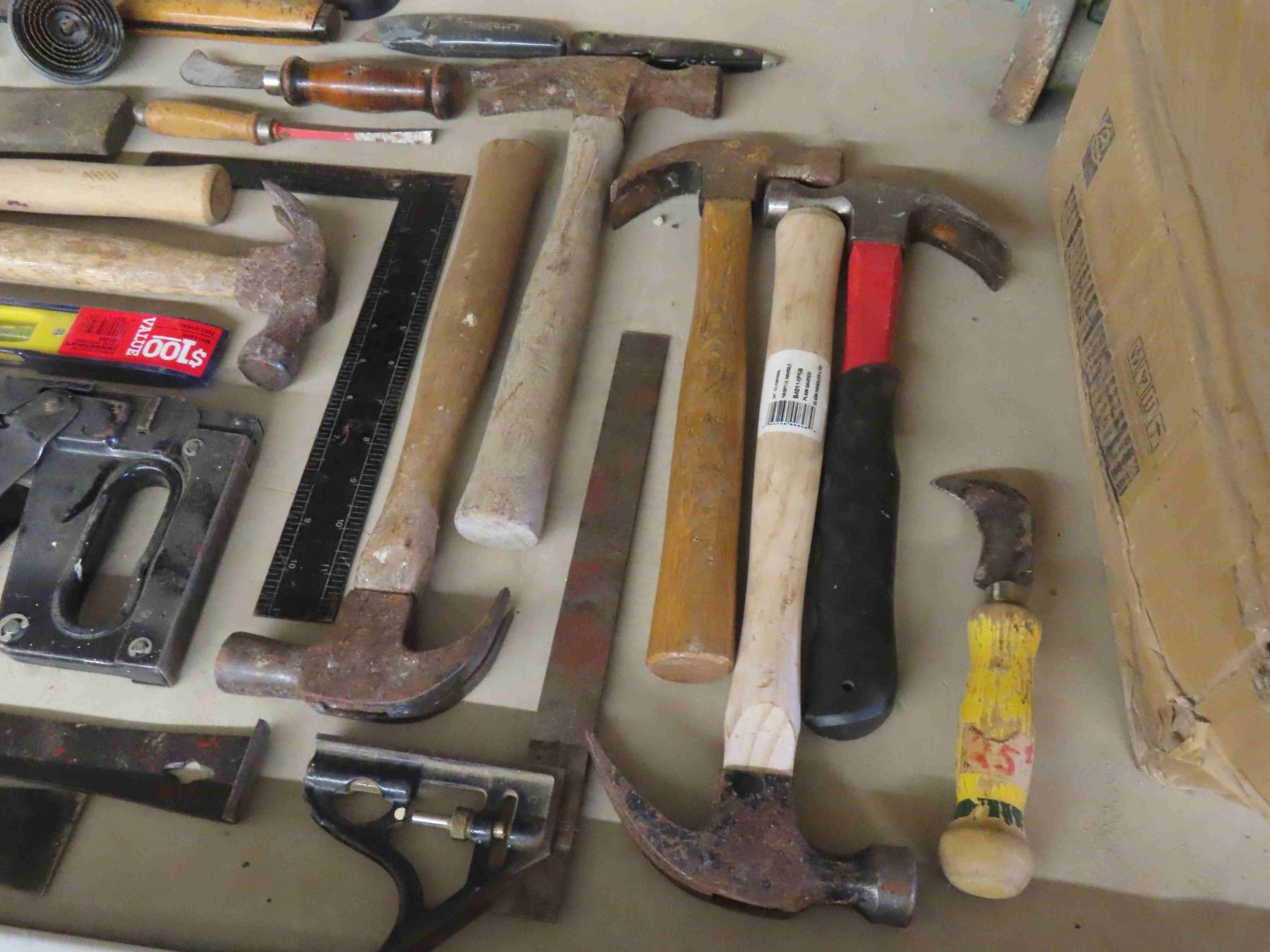 hand tools, hammers staple gun, caulking gun, level, utility knife, square and more