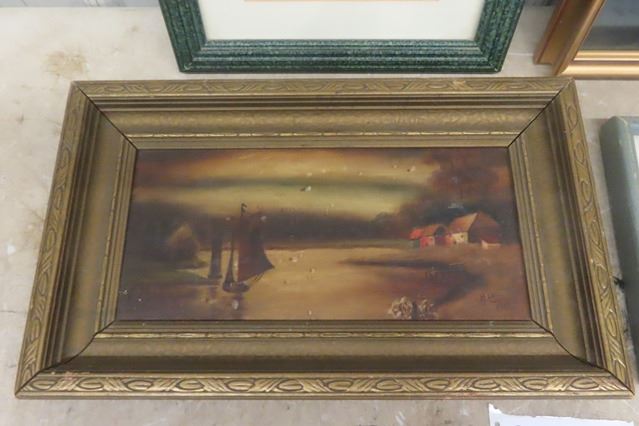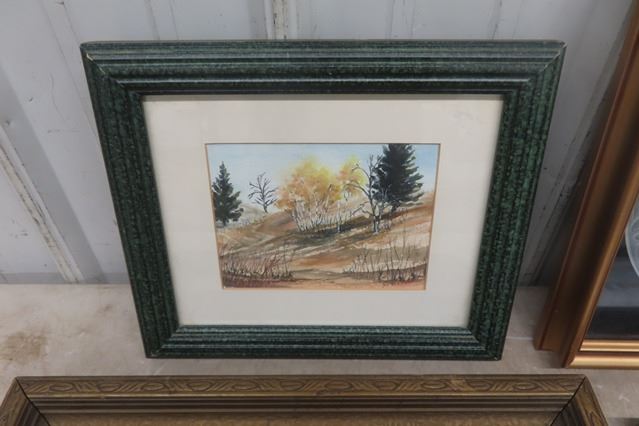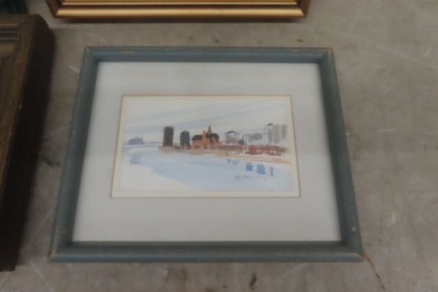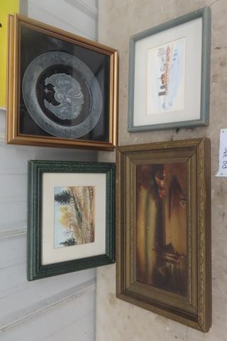 2 Water Colors, Oil on Canvas, Commemorative Plate - All Framed - Largest 10" x 16.5"