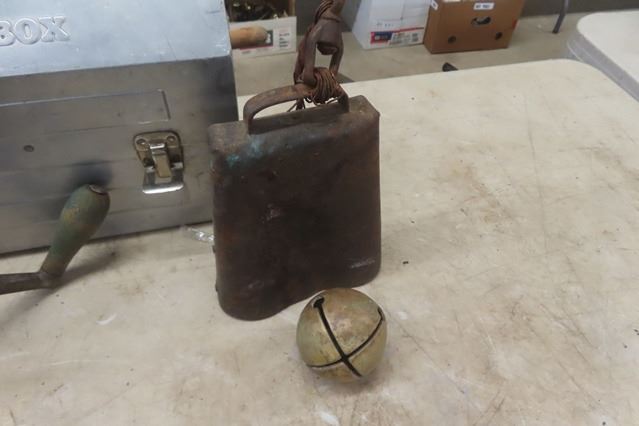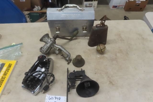 Strong Box Lunch Box, Cow Bell, Meat Grinder, Iron, Cast Bell with Tractor