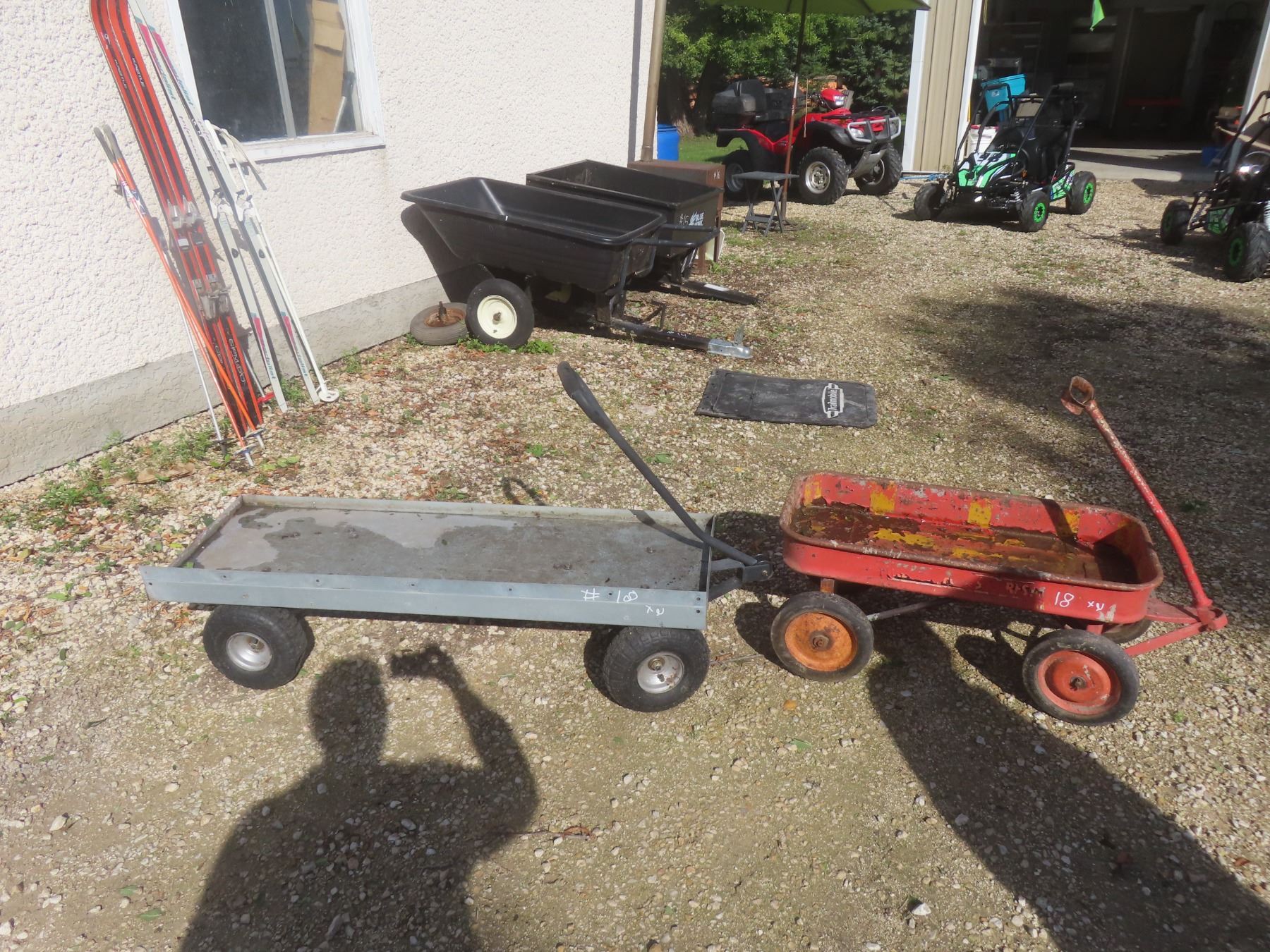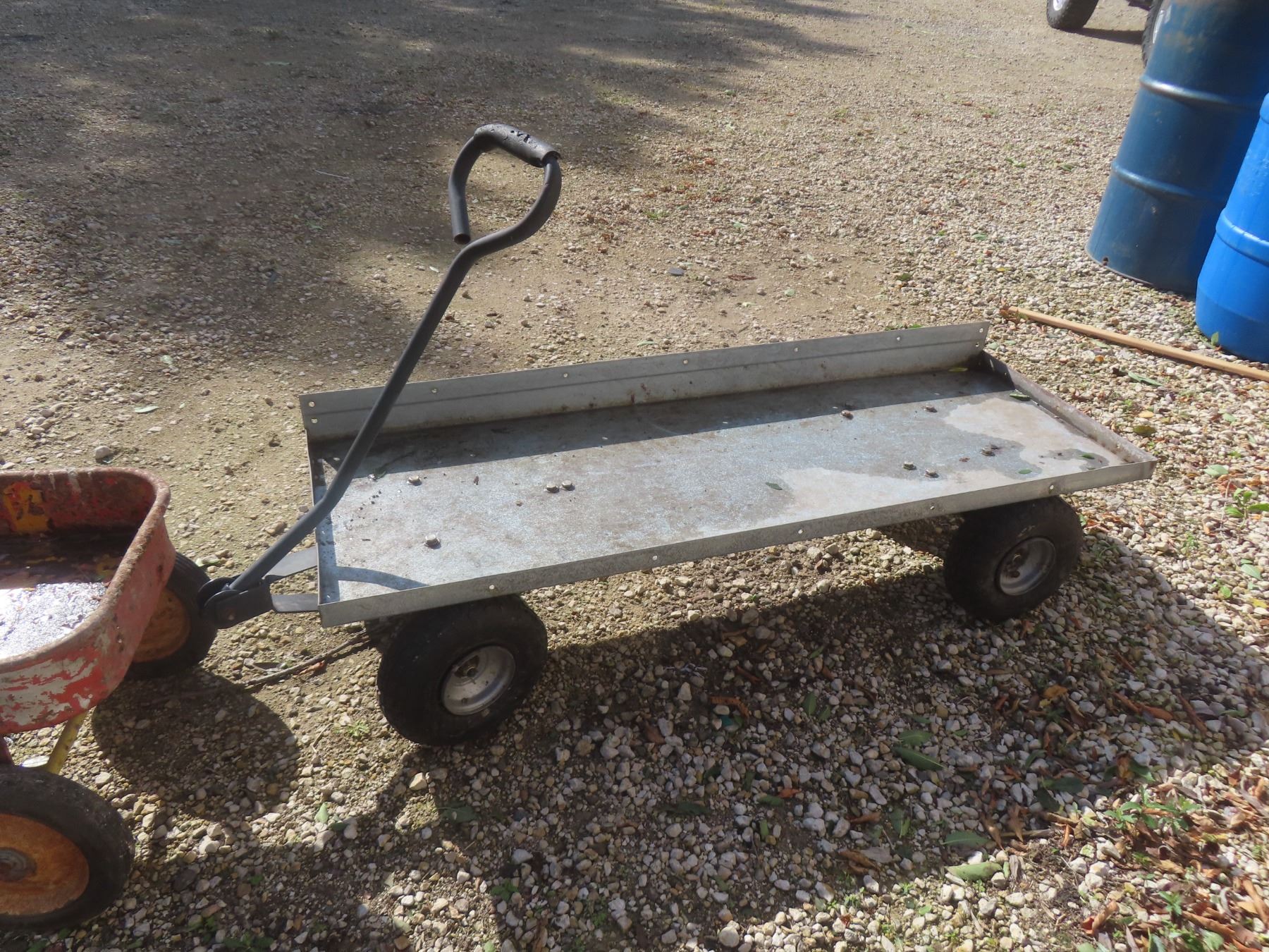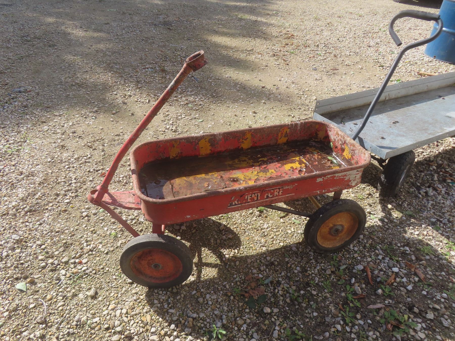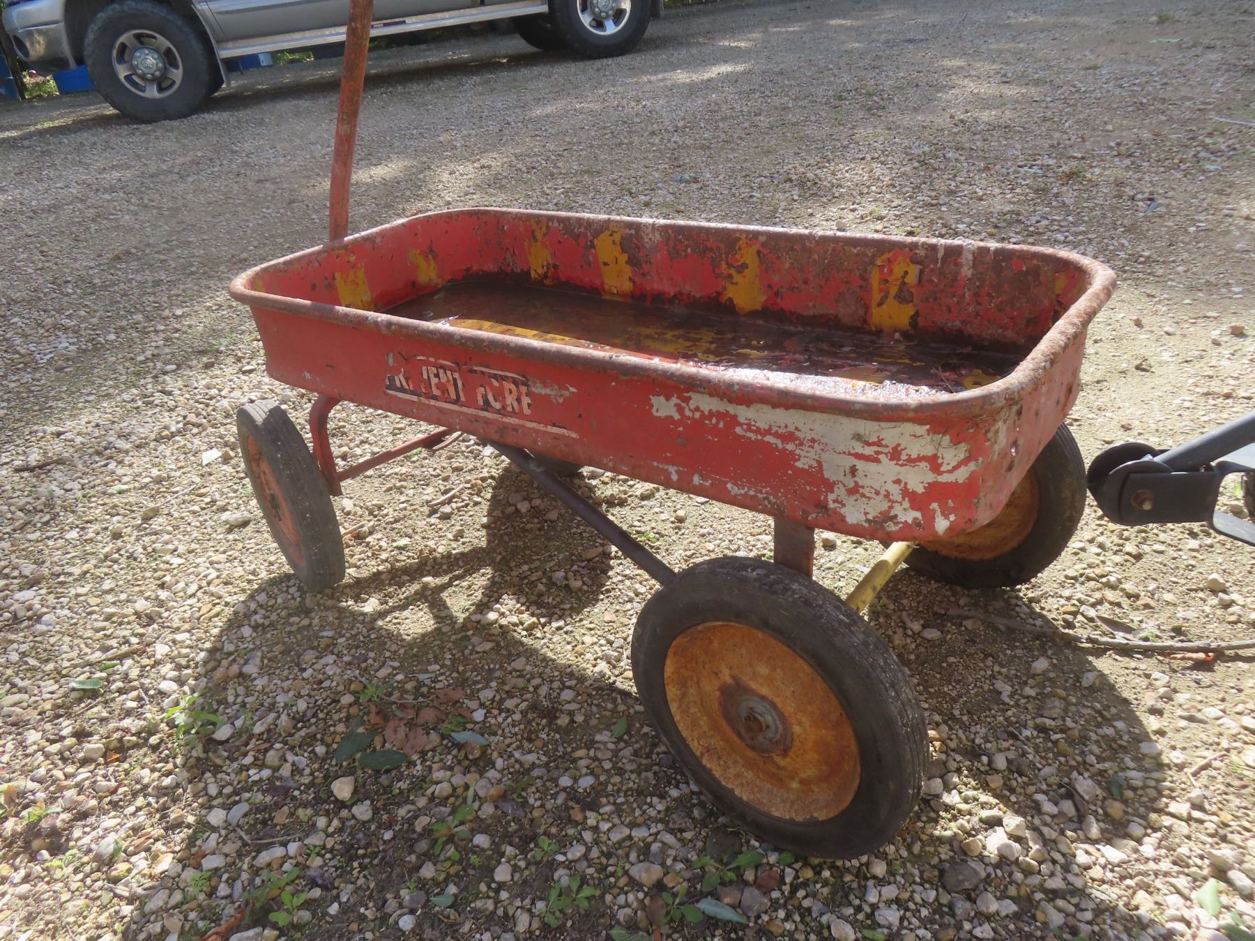 Red Metal Wagon and Metal Cart