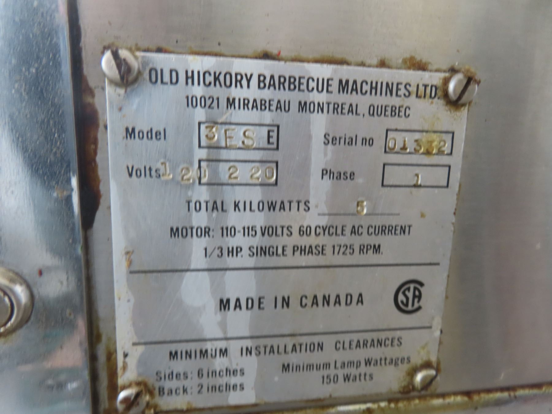 Old Hickory Commercial BBQ Machine/Rotissary Chicken Model H3ESE 220V 1/3HP Single Phase with Rolling Stand