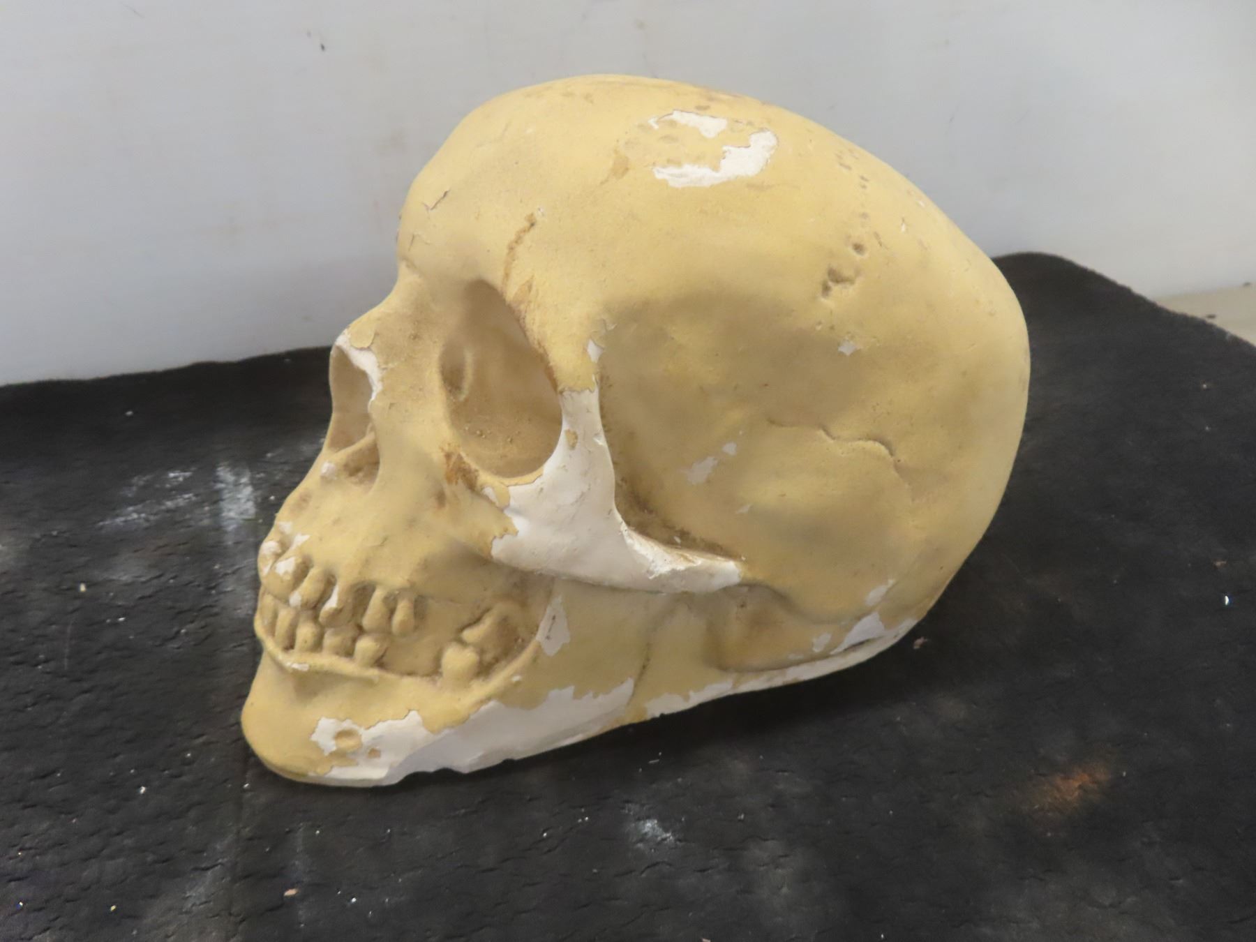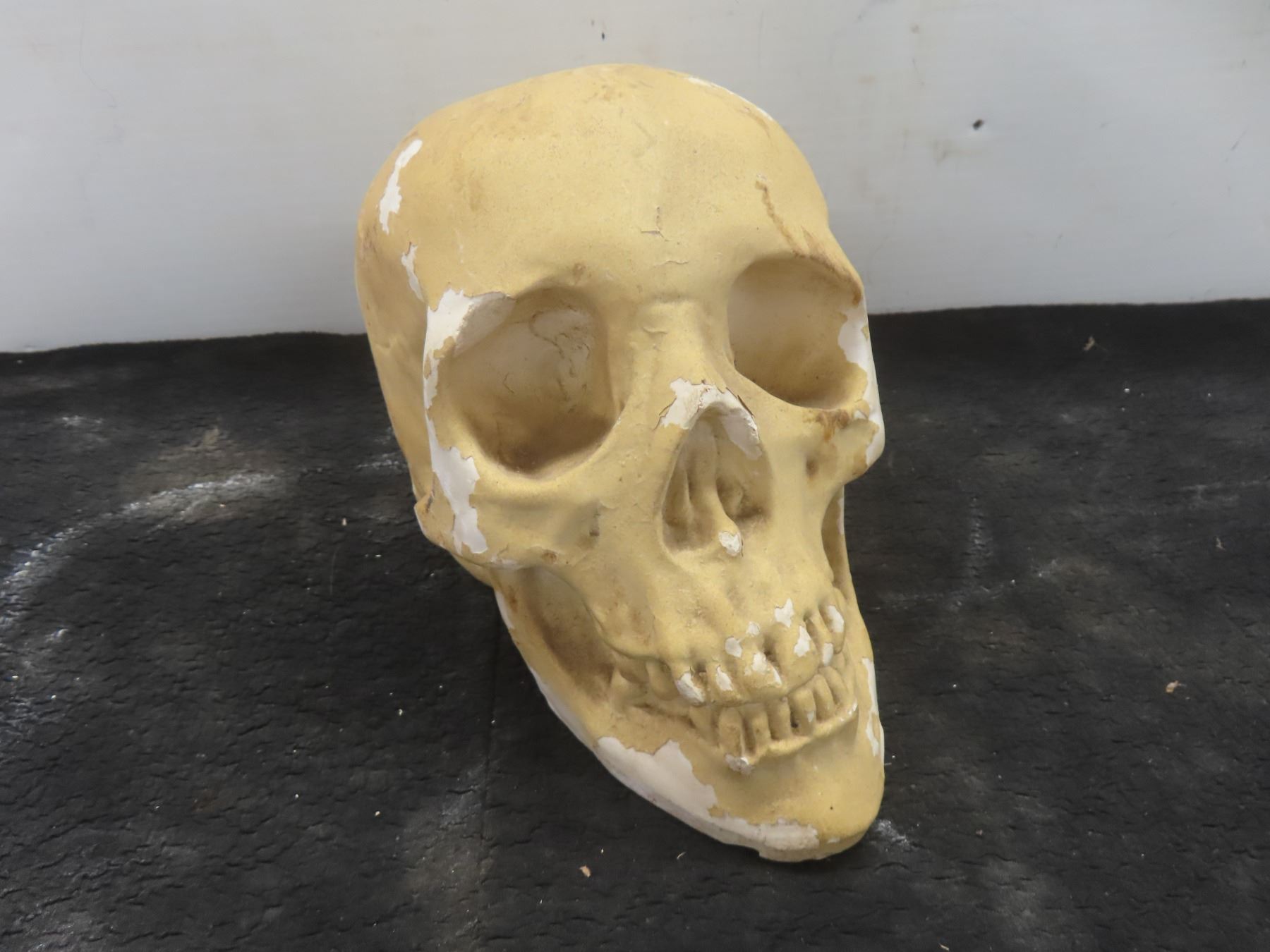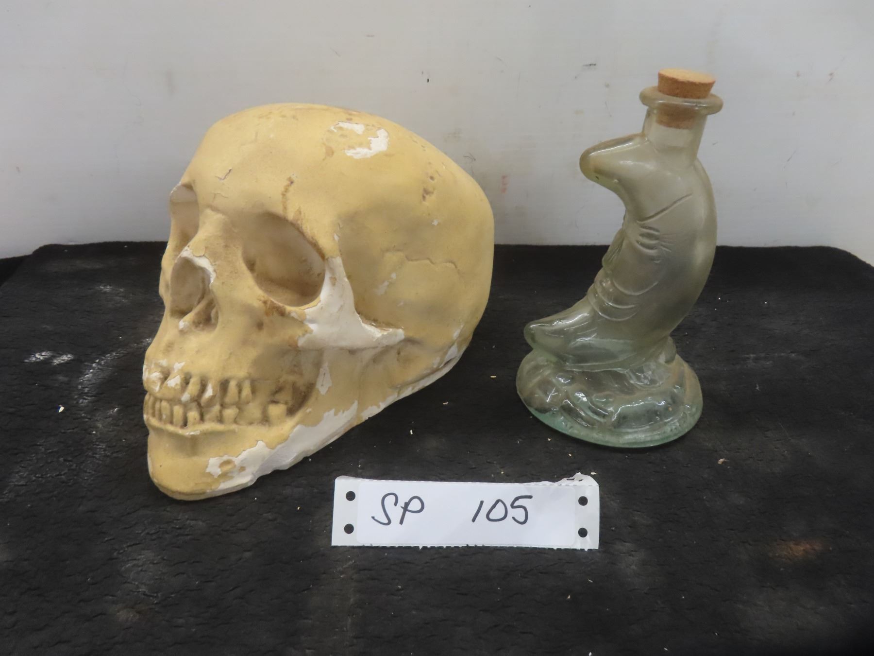 Plastic Skull + Glass Bottle Cresent Moon 7" High