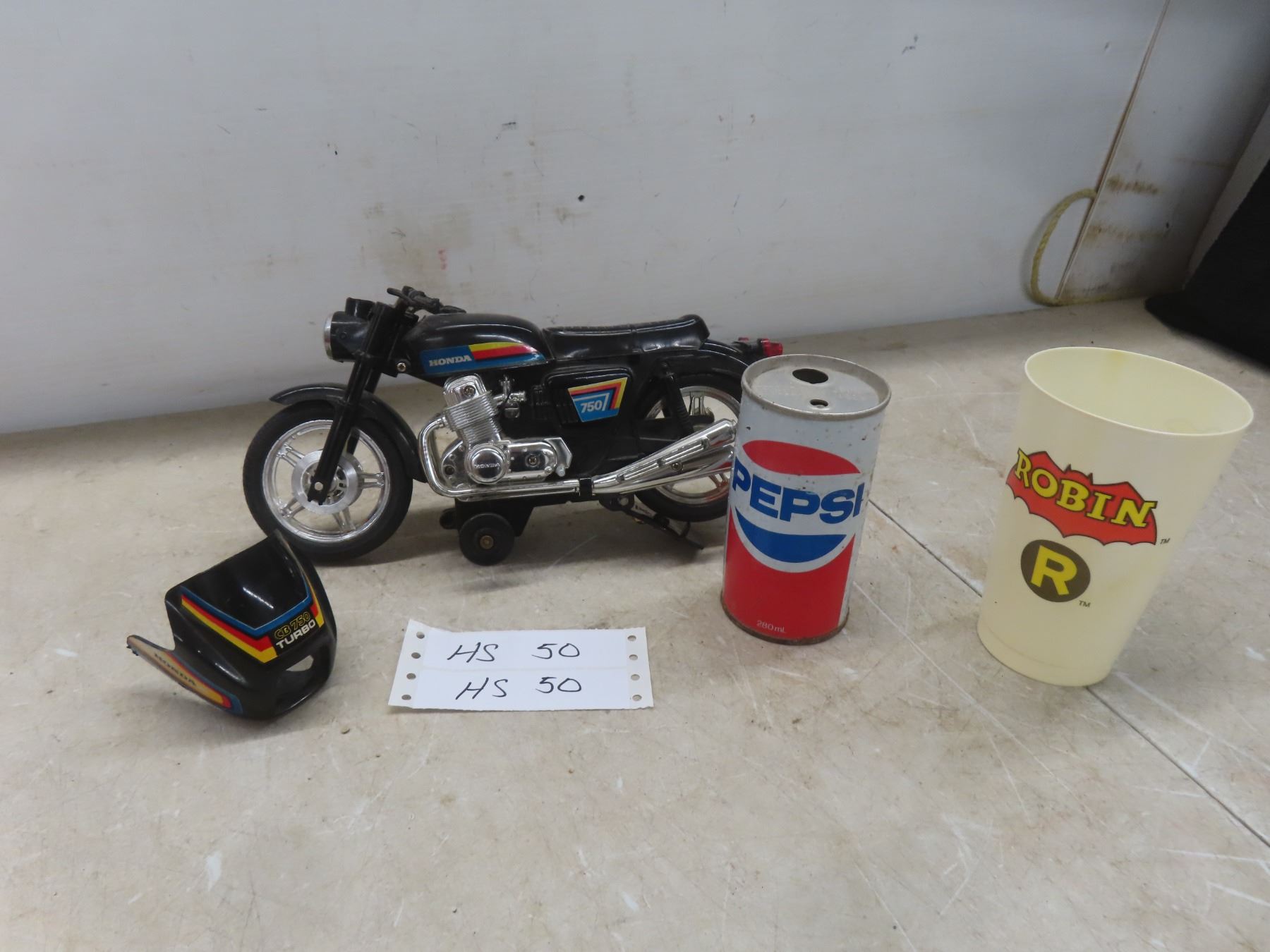 Battery Operated 750 Honda Motorcycle & Pepsi Tin