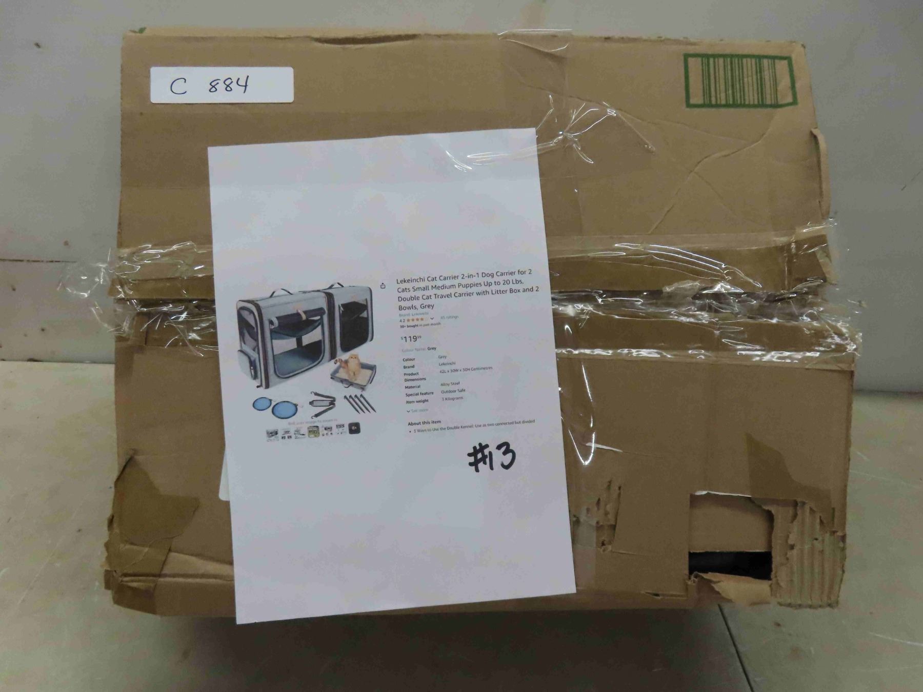 lekeinchi cat carrier 2 in 1 dog carrier for 2 cats smalll medium puppies up to 20 LBS, double cat travel caiier with litter box and 2 bowls, grey New or Store Return