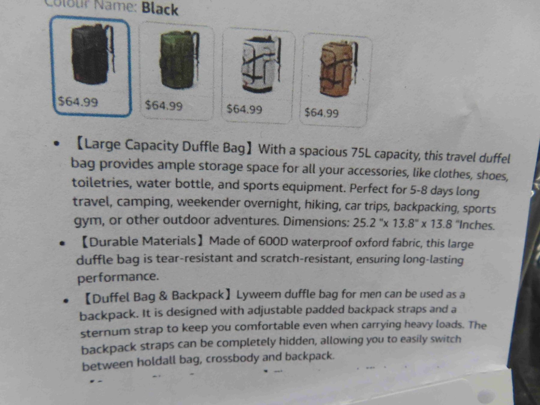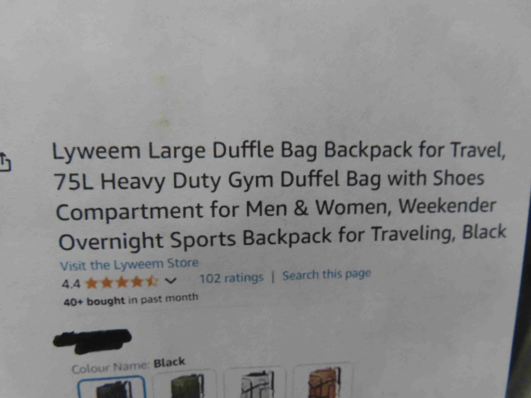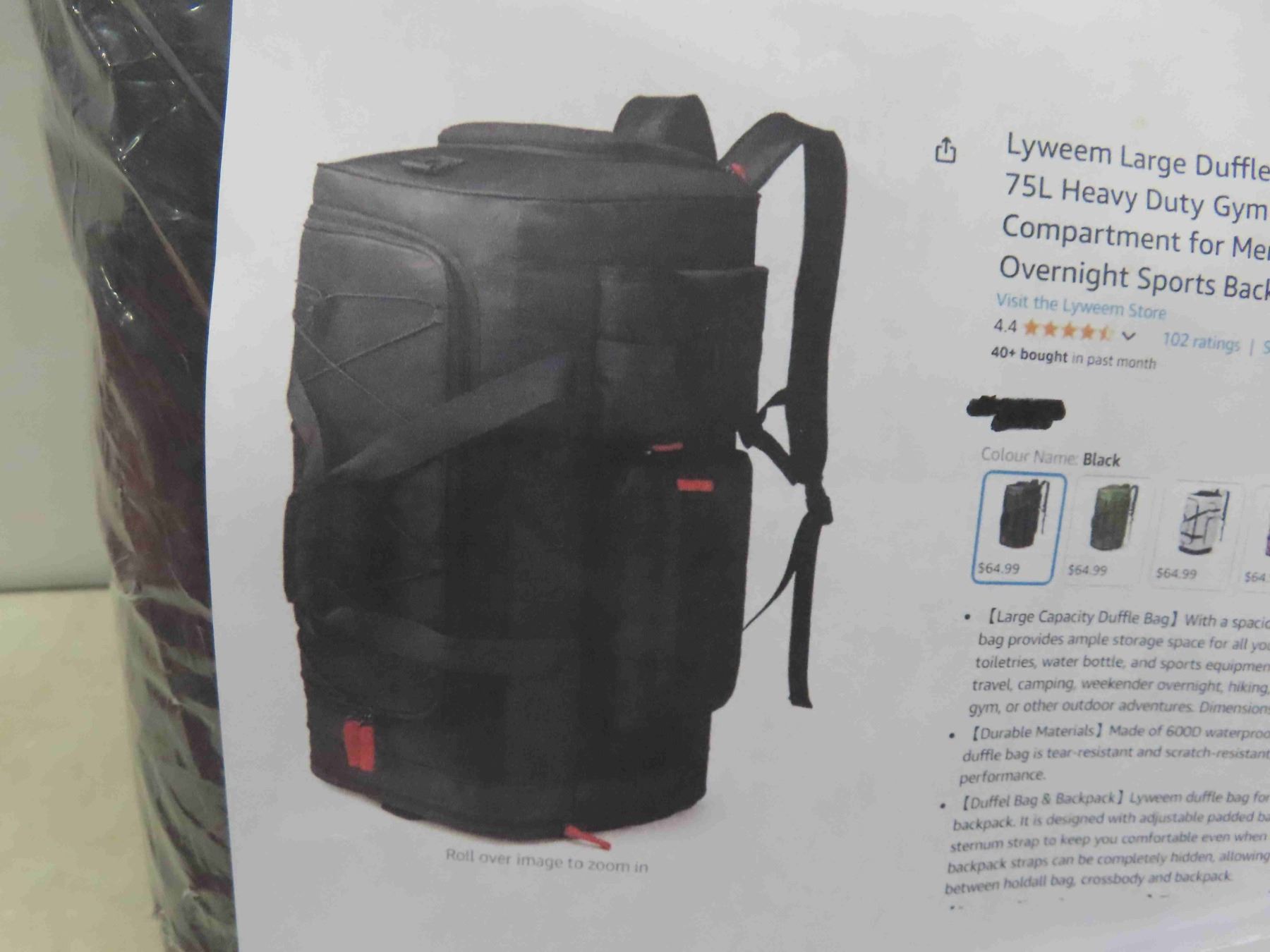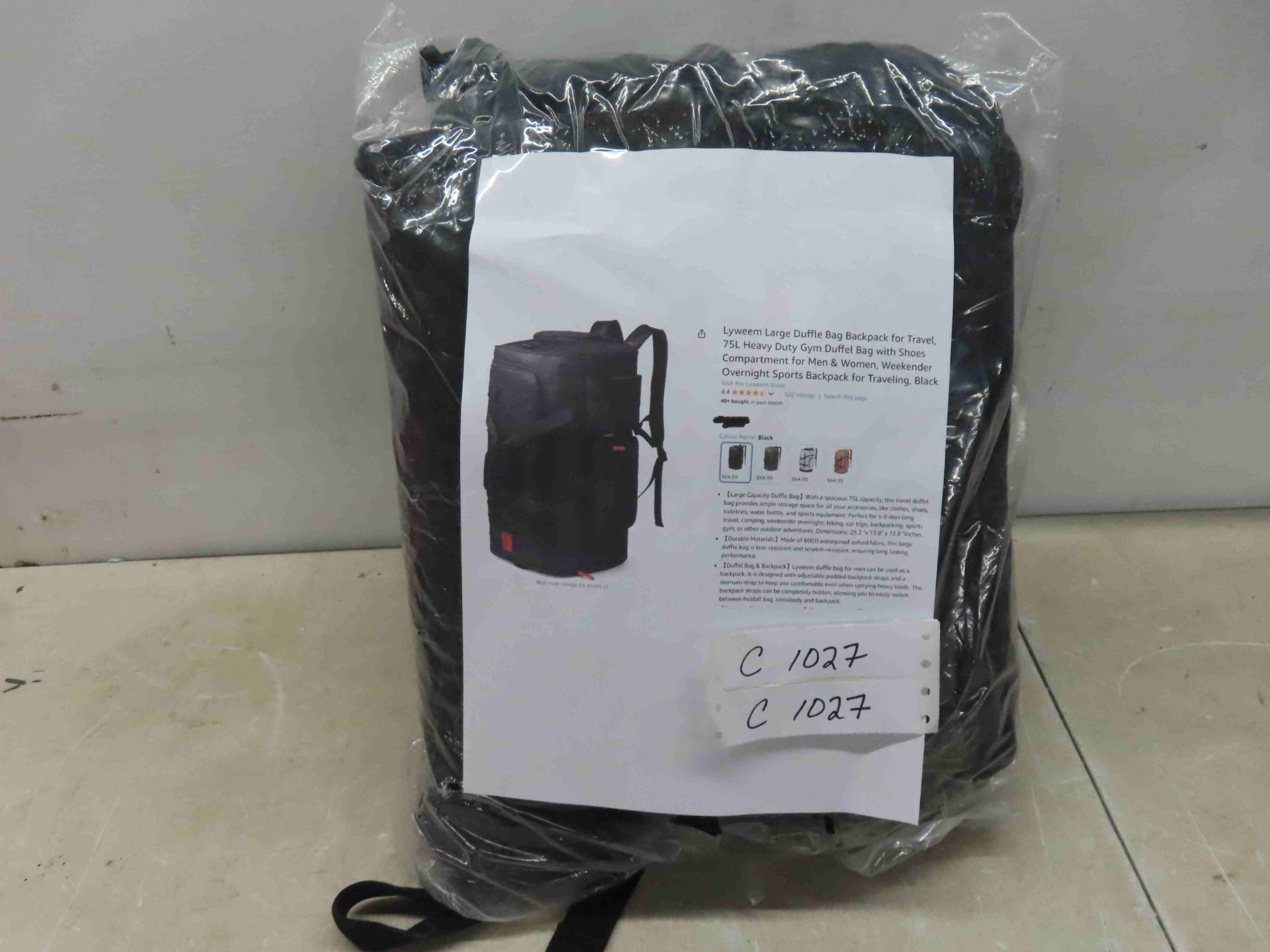 lyweem large duffle bag backpack for travel, 75L heavy duty gym duffle bag with shoes compartment for man and women, weelender overnight sports backpack for travelling, blackNew or Store Return