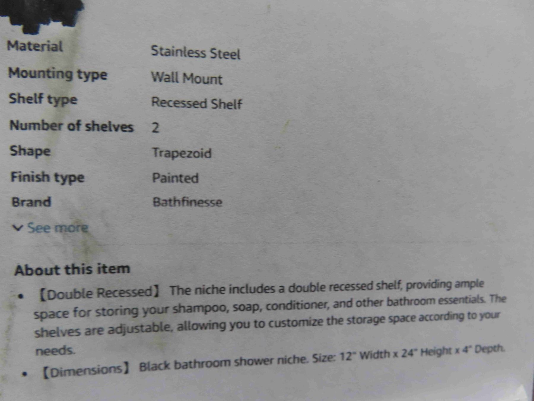 new shower niche 12" x24" black, wall niche double shelves recessed shower shelf for bathroom storage, no tile needed over moiunt instillationNew or Store Return