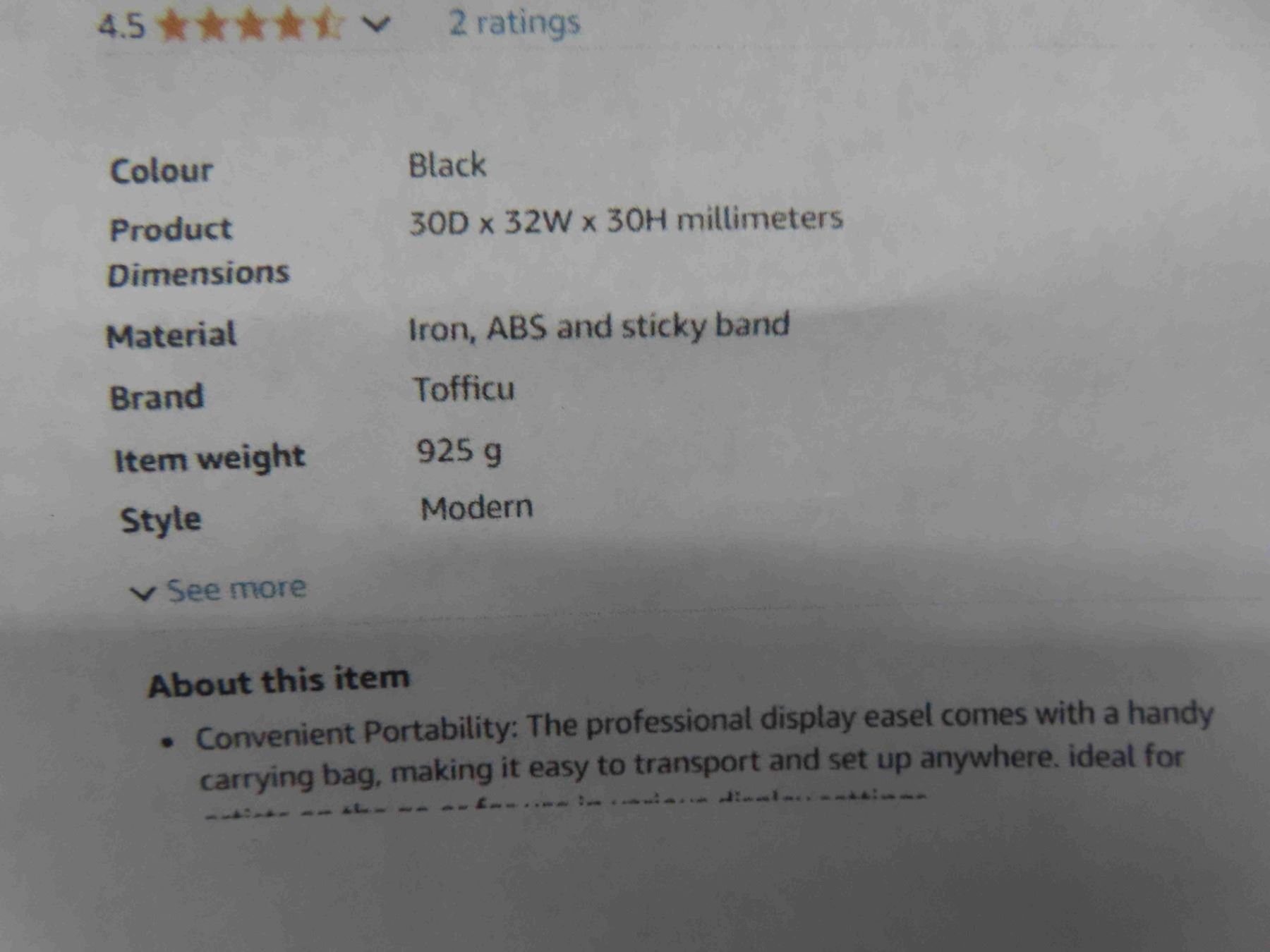 new- tofficu portable folding easle stand- adjustable height metal tripod for painting, wedding signs and art displays - includes convenient carry bag- 20.74 x3.14x2.95 inches New or Store Return