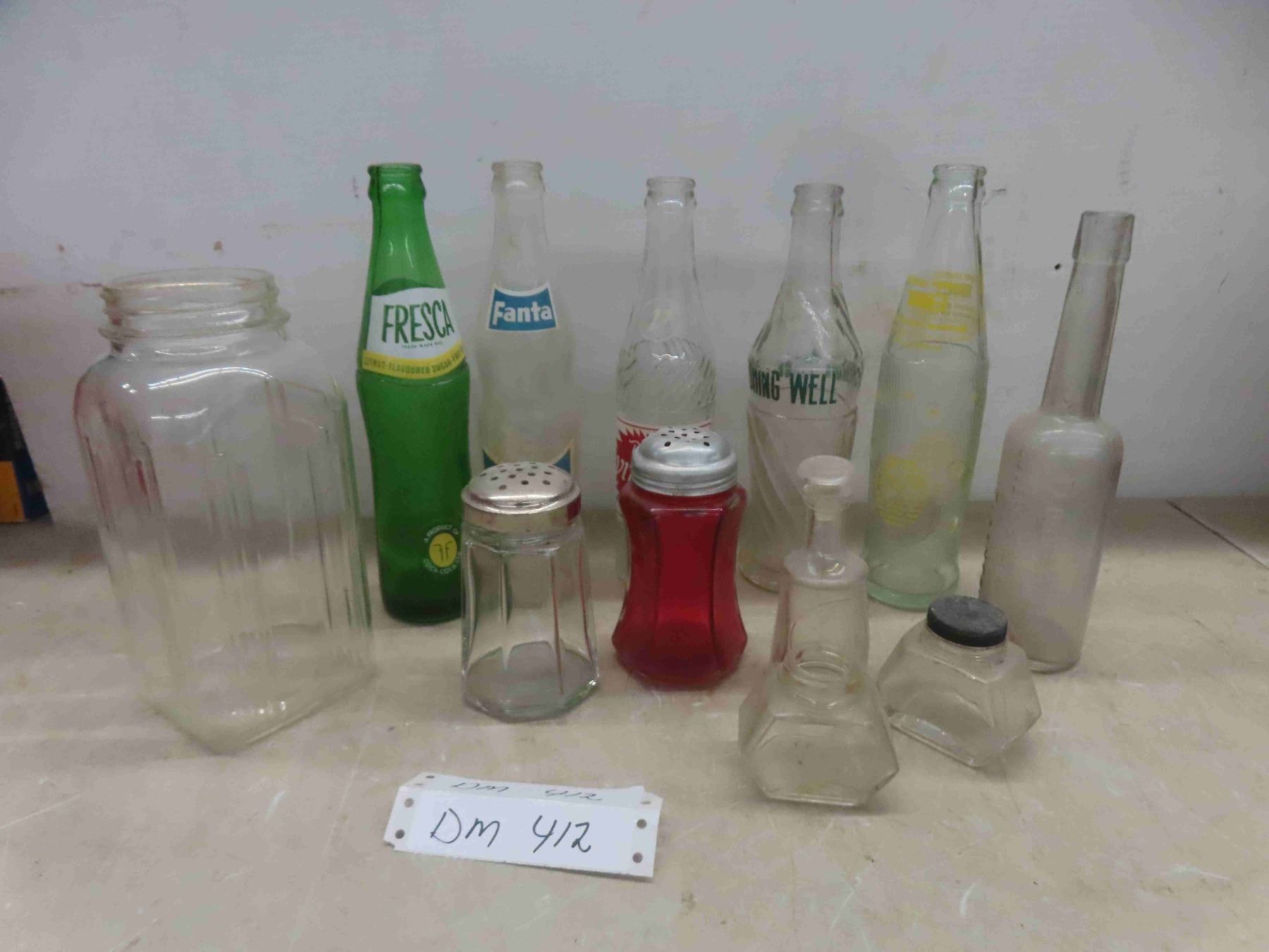 pop bottles, fresca, fanta, wishing well, flordia water, salt and pepper shakkers