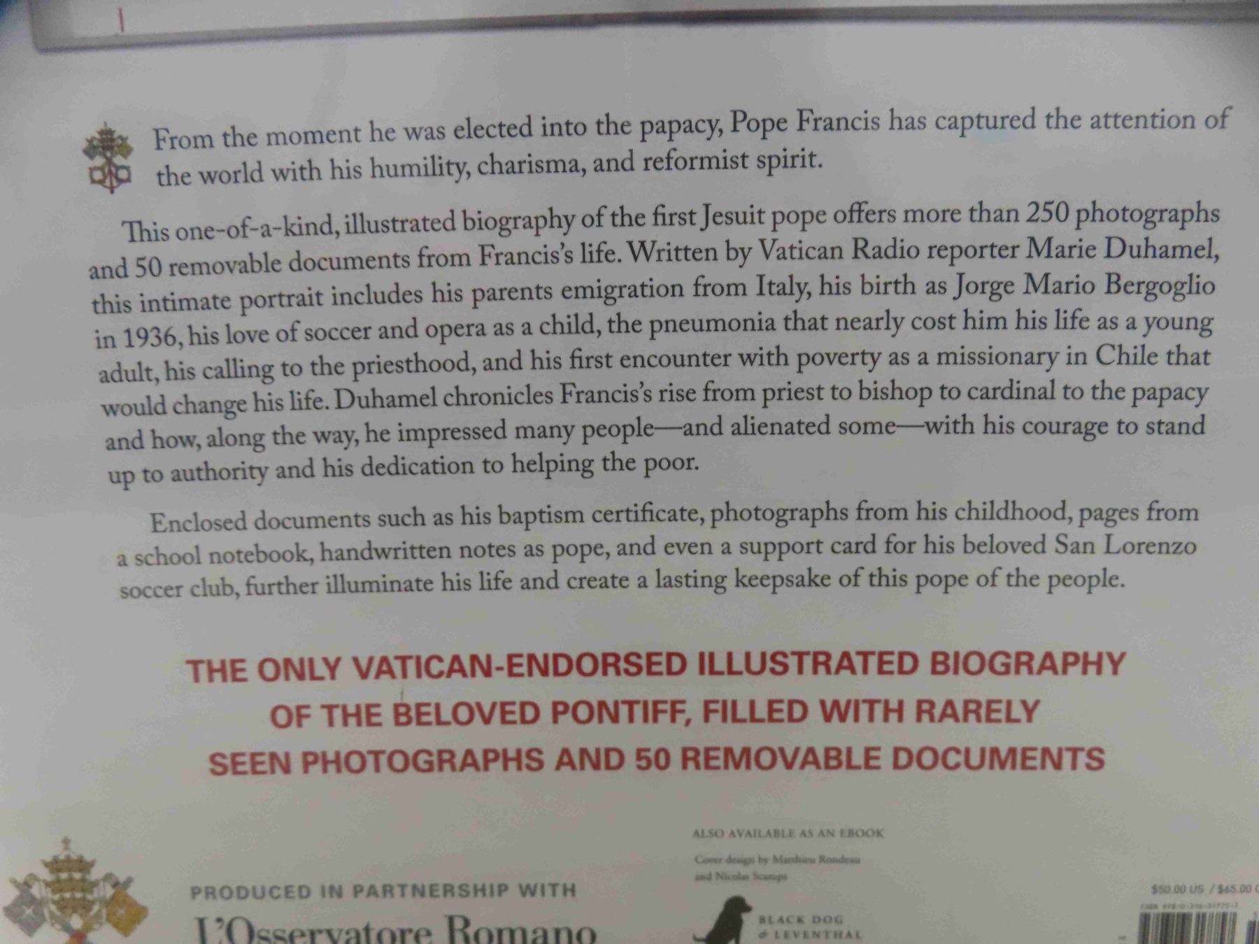 pope francis large book with 250 photgraphs and 50 removaable documents from pope franciss life still sealed