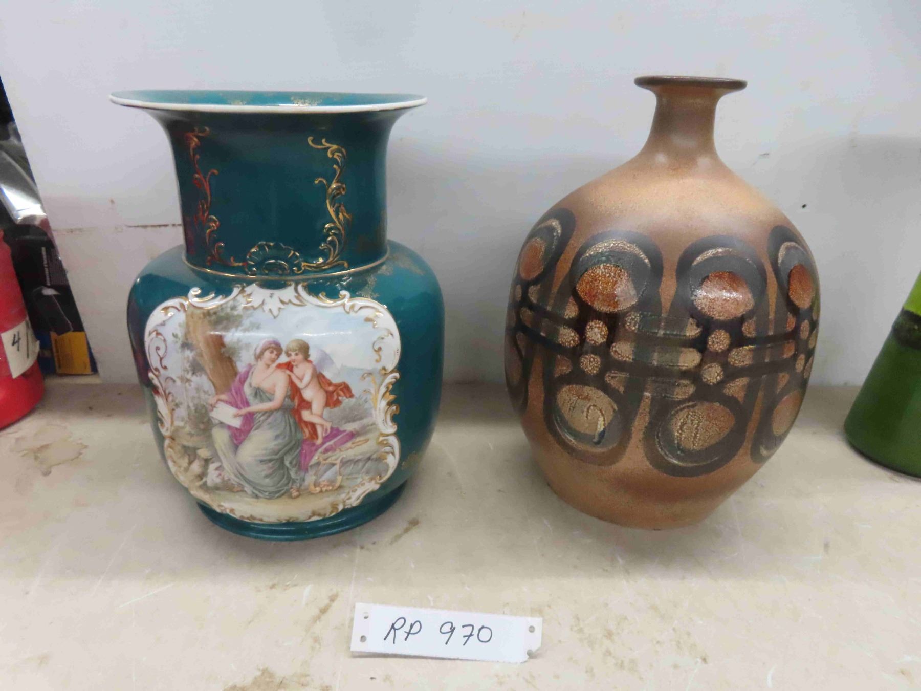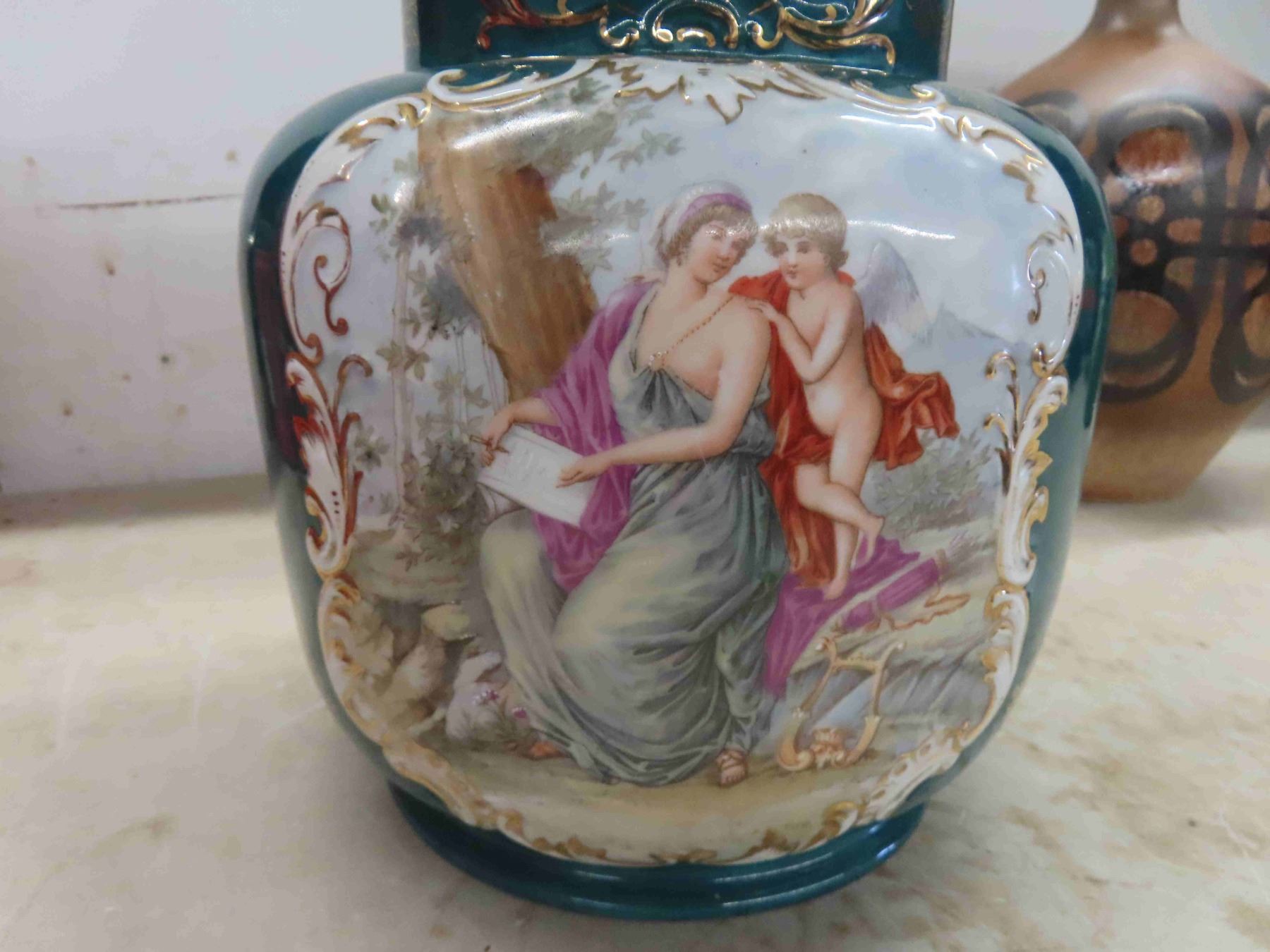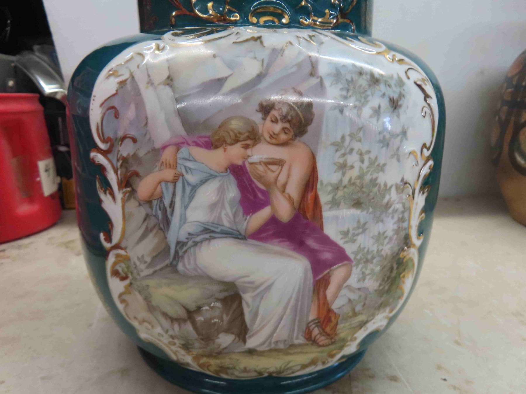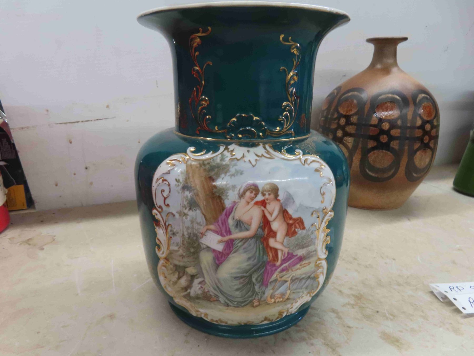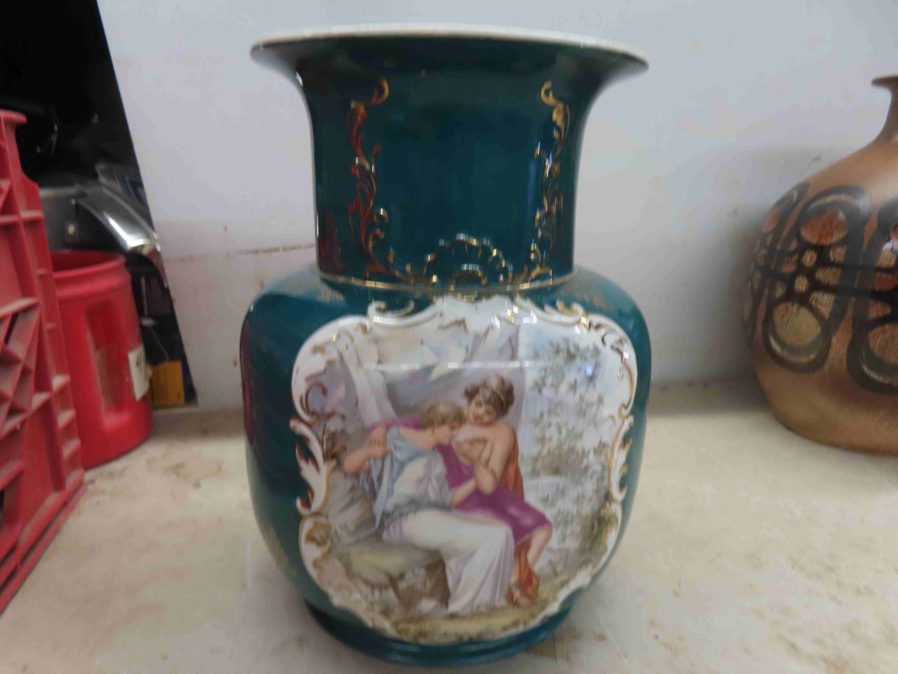 royal austina hand painted sccene opn porcelaiin vase, signed pottery vase by balis 12" T